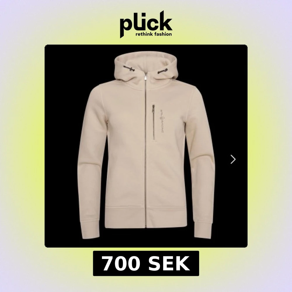 Snygg beige hoodie från Sail Racing med hel dragkedja och huva med snörning. Tröjan har en bröstficka med dragkedja och diskret logga på vänster sida. Storlek L i barn men passar M/S