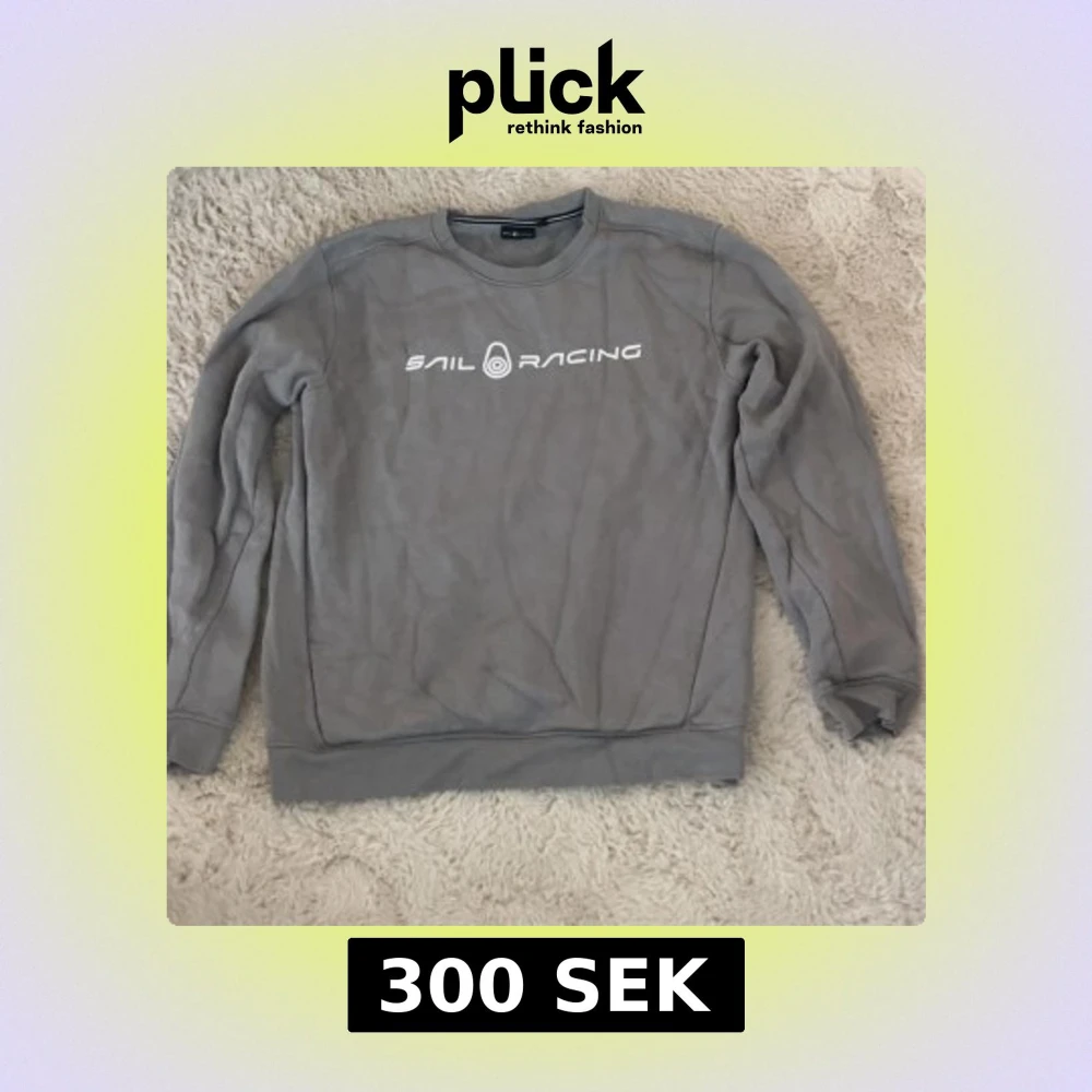 Säljer en stilren grå sweatshirt från Sail Racing med tryck på bröstet. Tröjan har långa ärmar och en rund halsringning. Perfekt för en avslappnad stil.