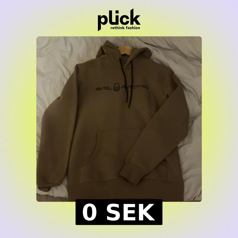 Säljer en beige hoodie från Sail Racing med svart logotyp på bröstet. Tröjan har en klassisk känguruficka och justerbar huva med svarta snören. Perfekt för en avslappnad stil.