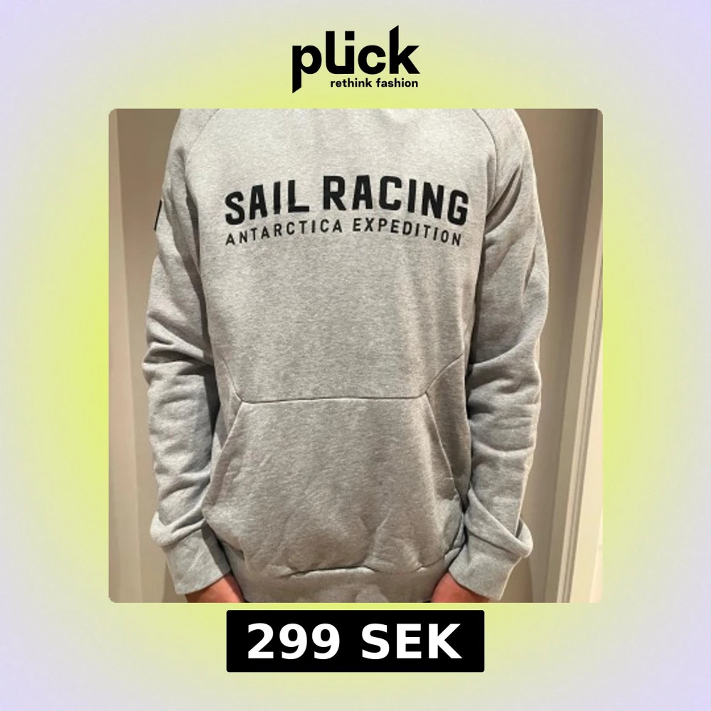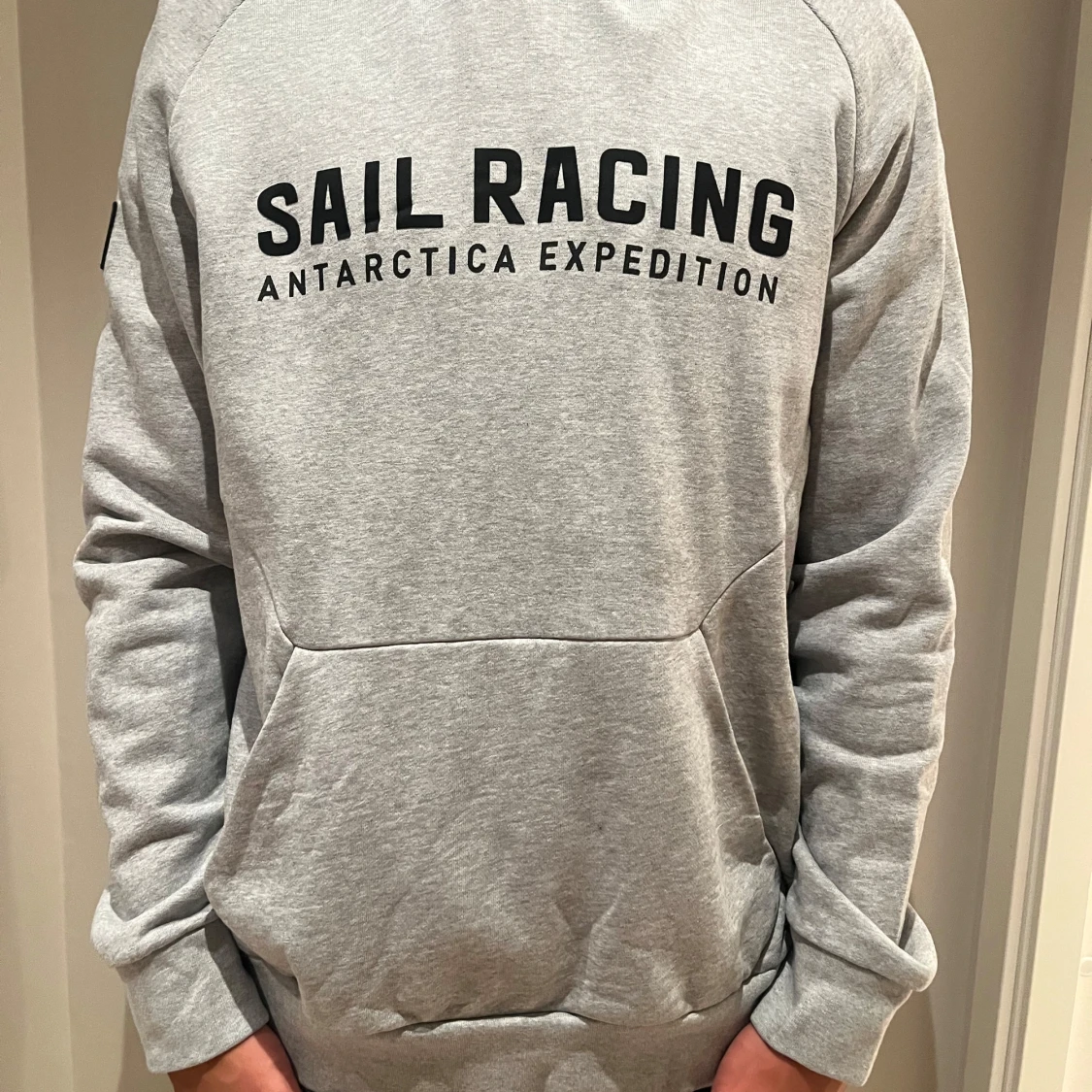 Snygg ljusgrå hoodie från Sail Racing med svart tryck framtill där det står 'Sail Racing Antarctica Expedition'. Tröjan har huva, känguruficka och långa ärmar. Perfekt för dig som gillar en clean och sportig stil.
