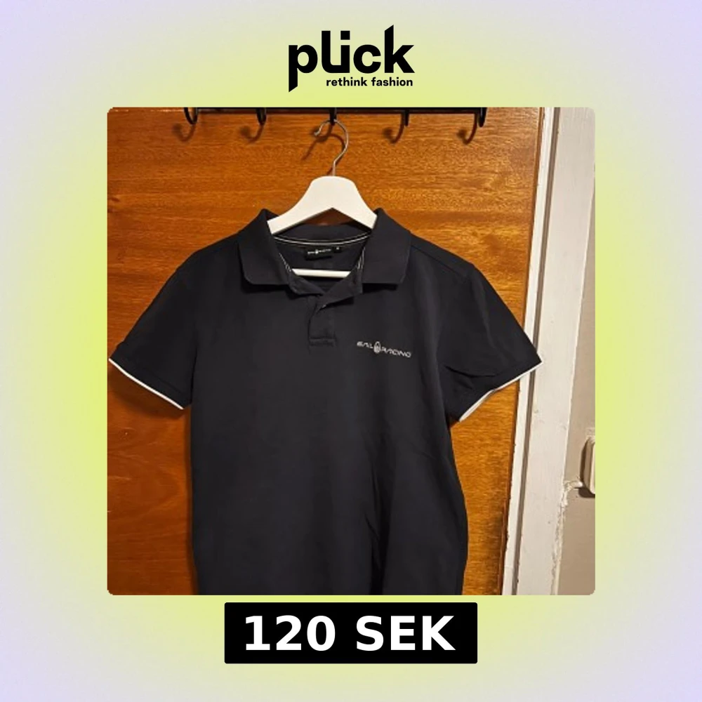 Svart pikétröja från Sail Racing med vit logga på bröstet och vit detalj på ärmsluten. Klassisk krage och korta ärmar, perfekt för en clean och sportig look.