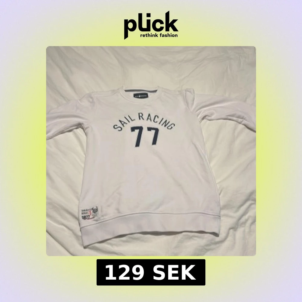Vit sweatshirt från Sail Racing med svart broderat tryck 'SAIL RACING 77' på bröstet. Klassisk rund hals och mjukt material som känns skönt mot huden. Perfekt för dig som gillar sportig och stilren look.