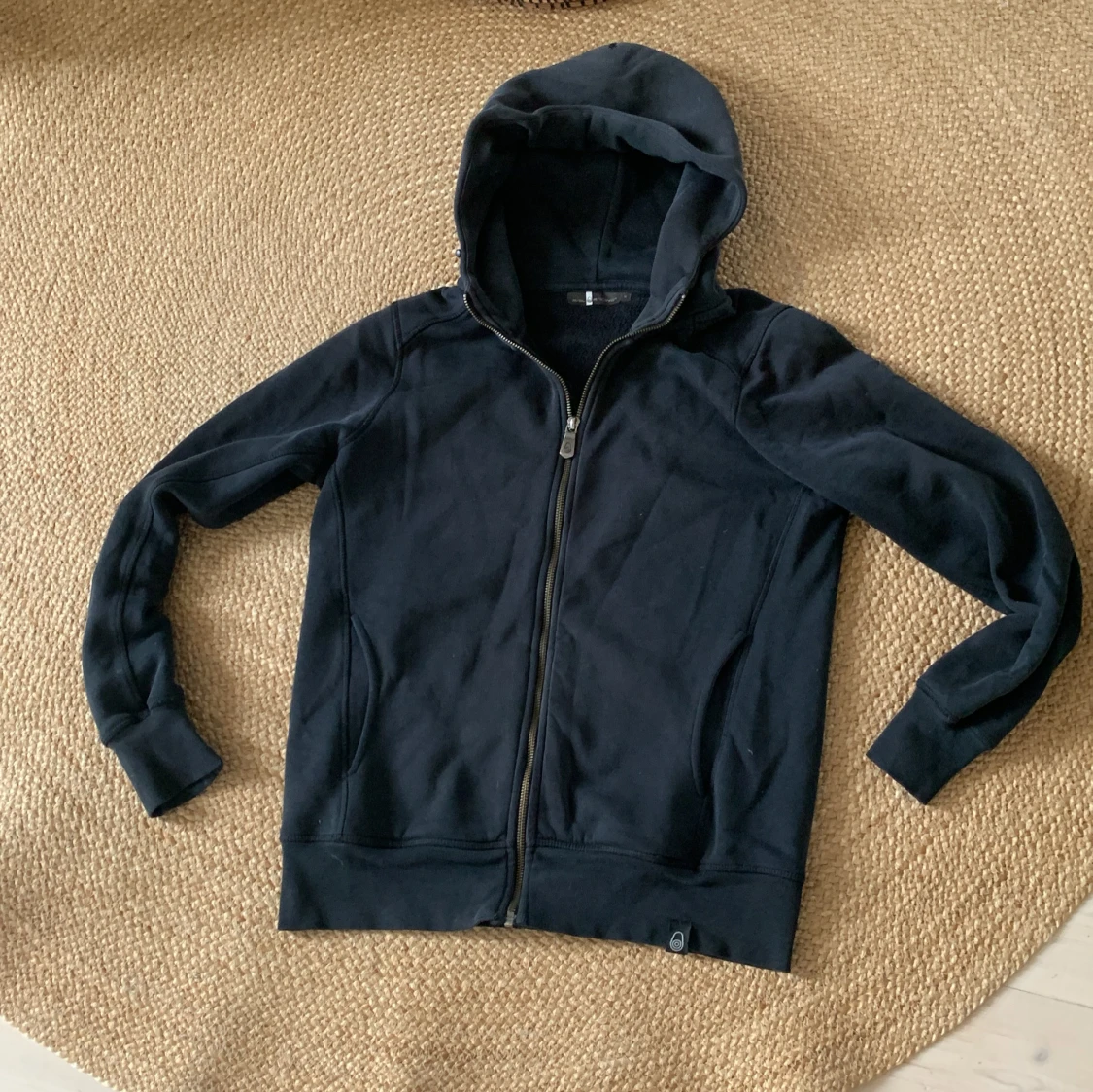Svart hoodie från Sail Racing med broderad logga och text på ryggen. Tröjan har dragkedja framtill, huva och långa ärmar med muddar. Perfekt för dig som gillar en stilren och sportig look. Materialet känns mjukt och bekvämt, troligen bomullsmix.