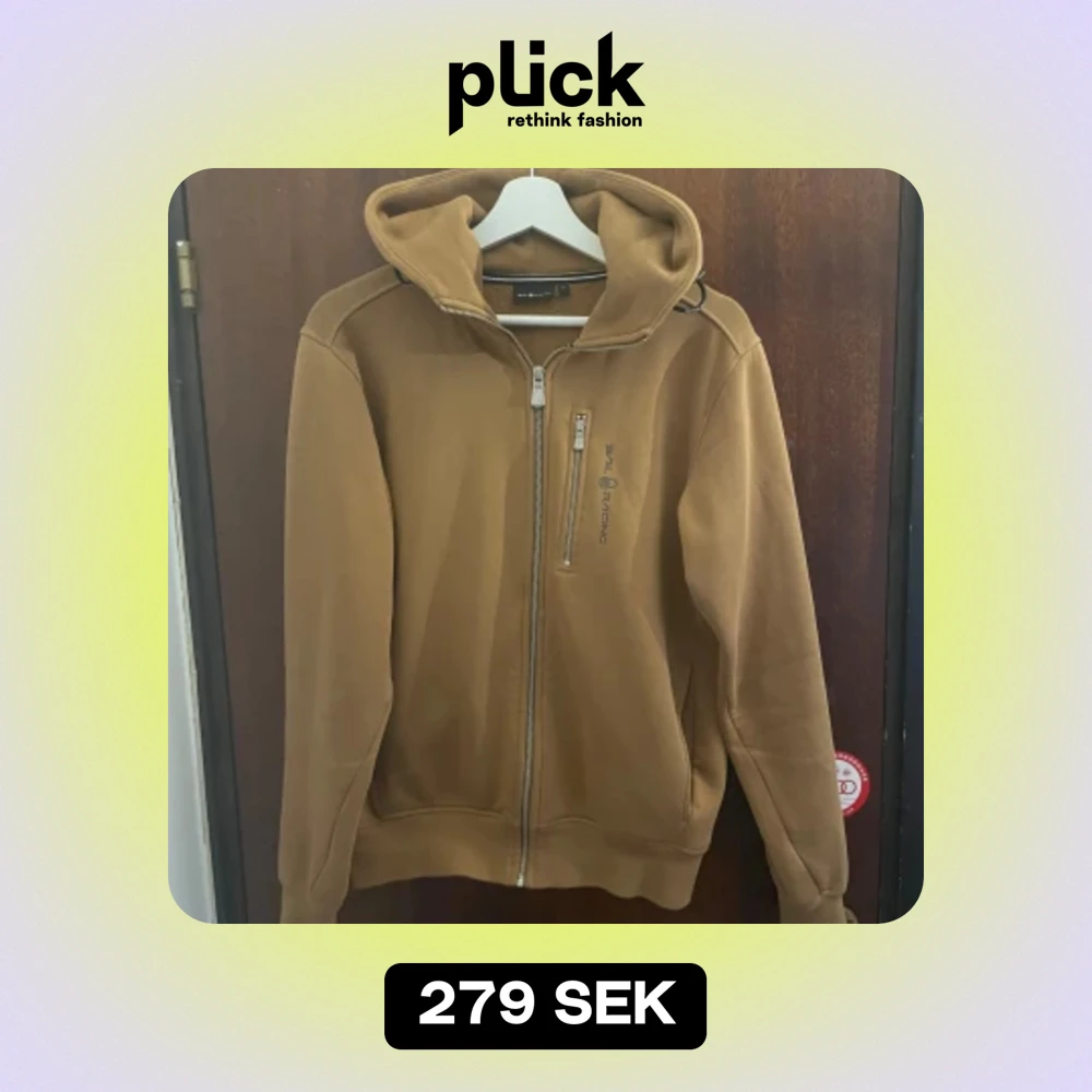 Säljer en snygg brun hoodie från Sail Racing i storlek S. Den har en dragkedja framtill och en bekväm huva. Perfekt för höst och vinter med sin varma och sköna känsla. Hoodien är i bra skick och redo för nya äventyr!