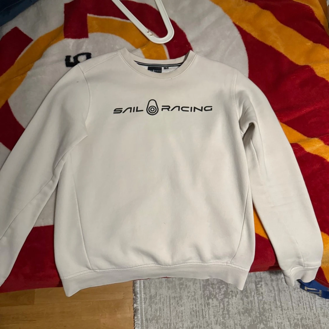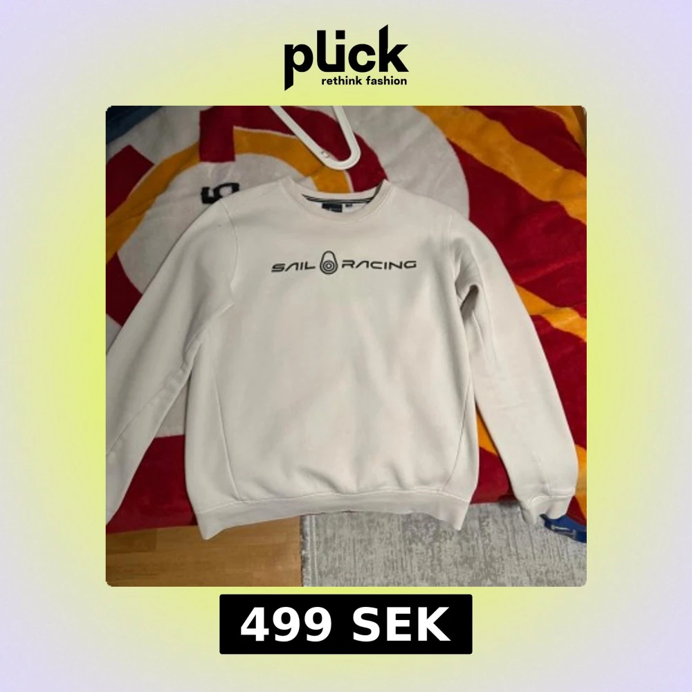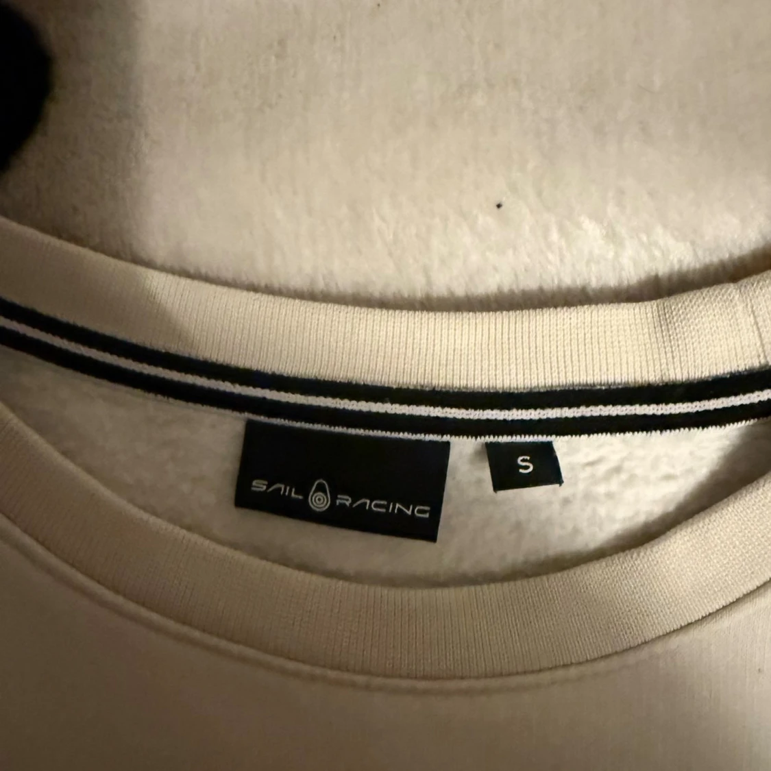 Vit sweatshirt från Sail Racing med svart logotyptryck på bröstet och liten logga i nacken. Klassisk rund halsringning och ribbade muddar vid ärmslut och nederkant. Tillverkad i mjuk bomull för en skön känsla. Perfekt för en clean och sportig stil.