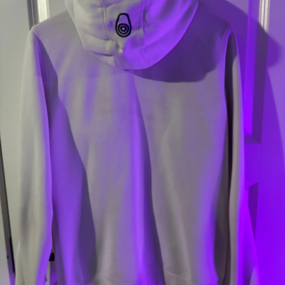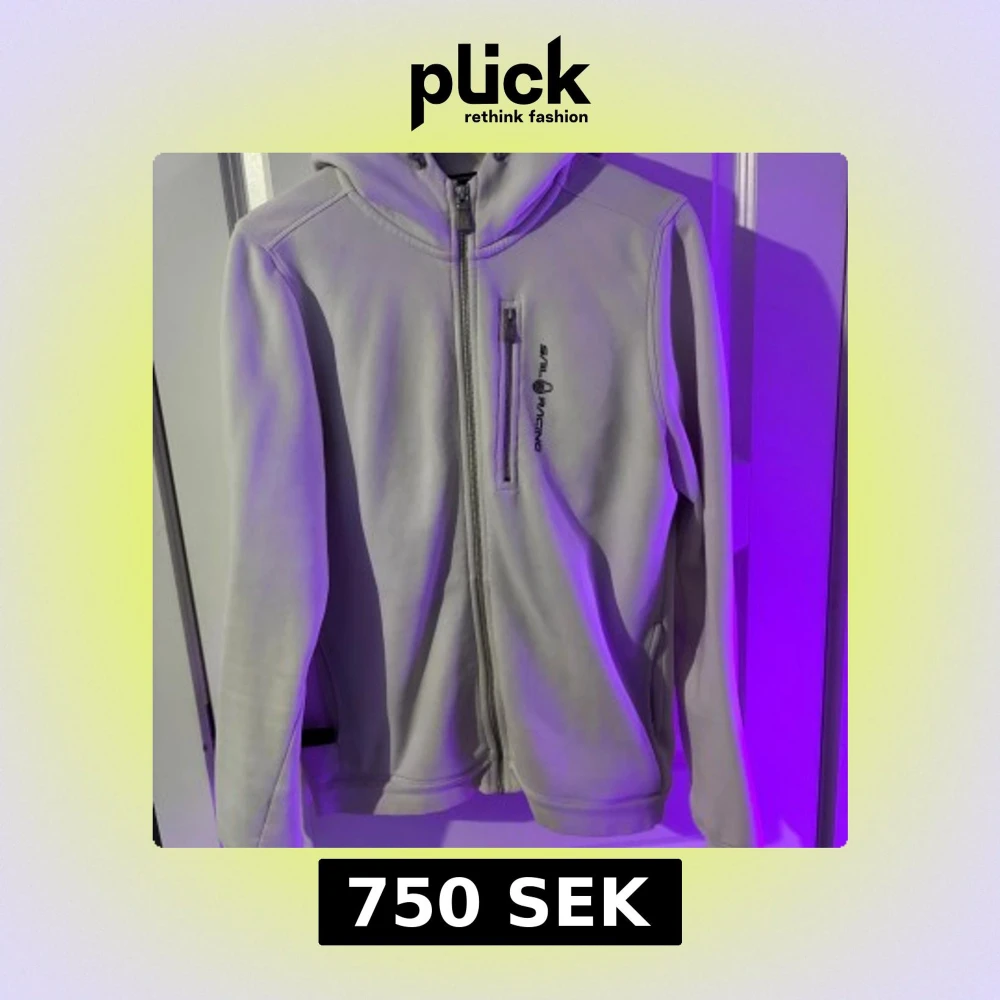 Säljer en stilren vit hoodie från Sail Racing med hel dragkedja framtill och en extra ficka med dragkedja på bröstet. Passar S och small M