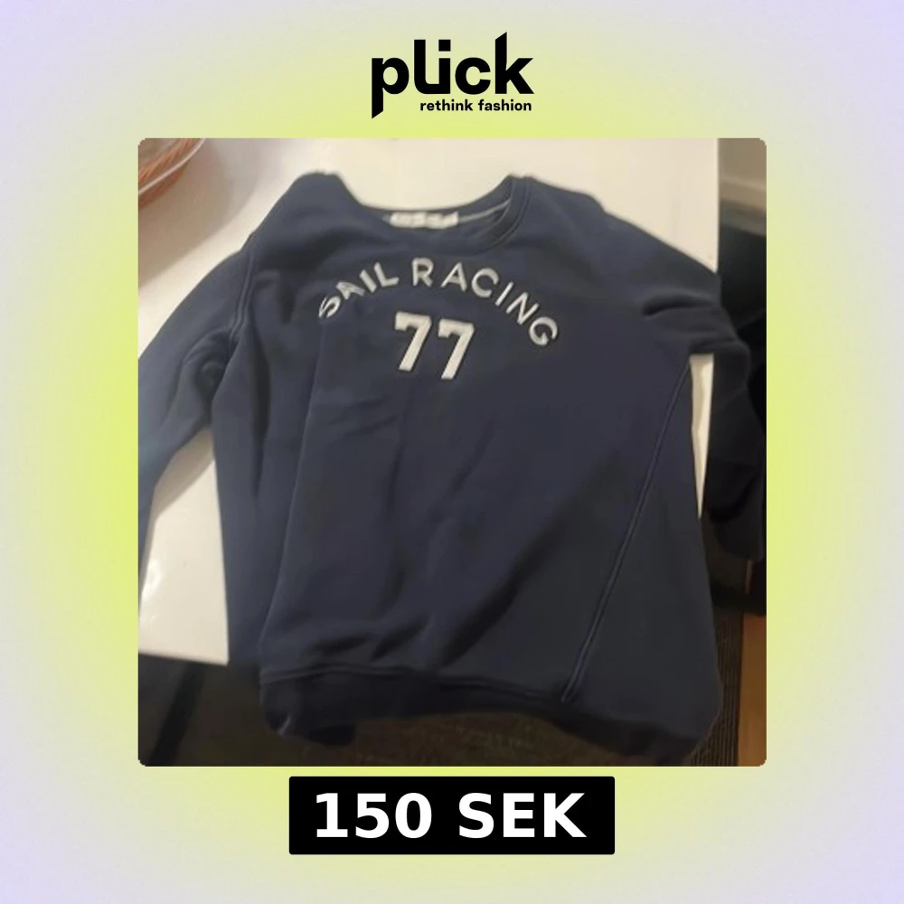 Säljer en marinblå sweatshirt från Sail Racing med vitt tryck 'SAIL RACING 77' Har inte använt tröjan den står M på den fast den passar runt S
