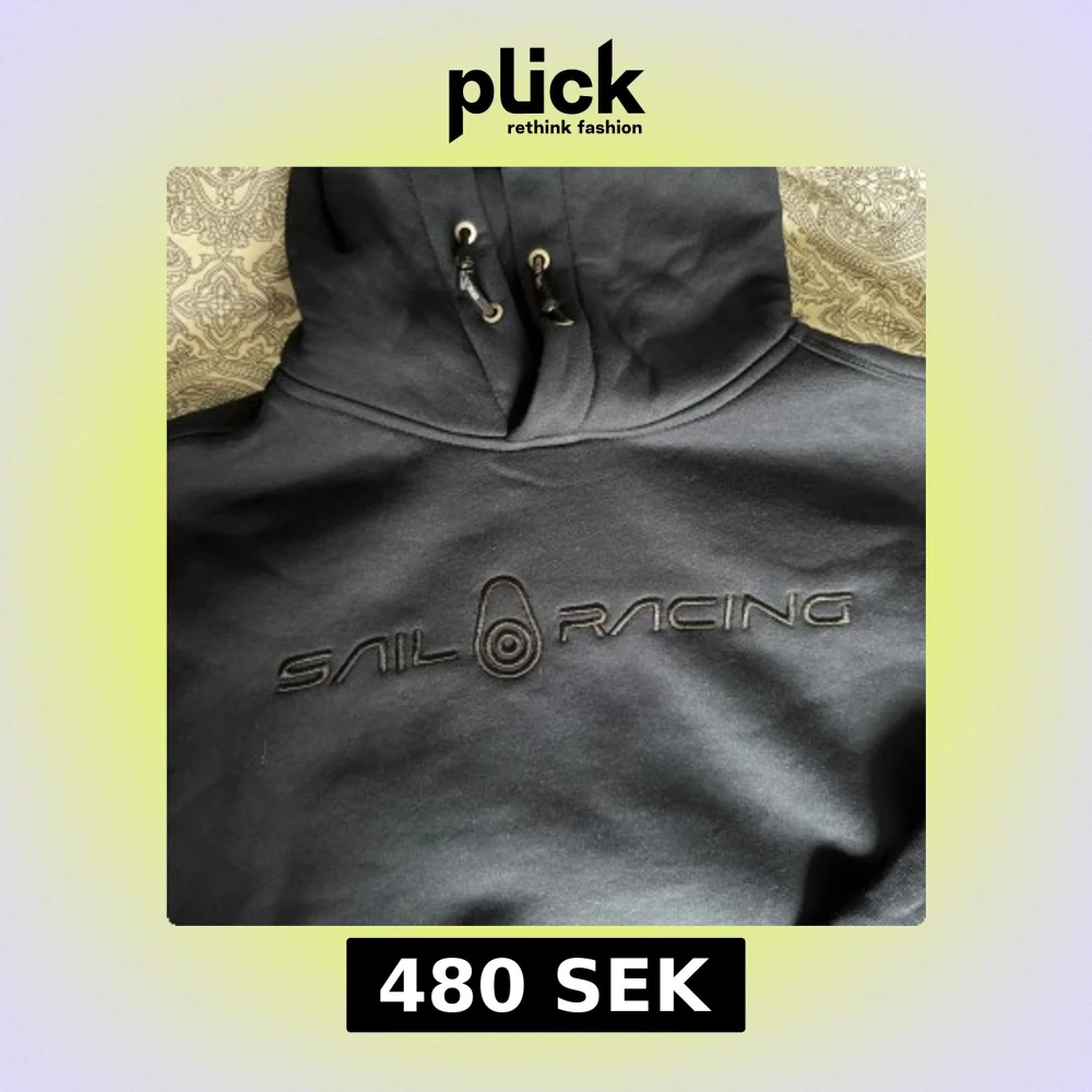 Marinblå hoodie från Sail Racing med broderad logga på bröstet. Tröjan har huva med snörning och en stor magficka. Mjuk insida och ribbade muddar vid ärmslut och nederkant. Perfekt för dig som gillar stilren streetwear. Använd en gång. Passar både tjej och kille