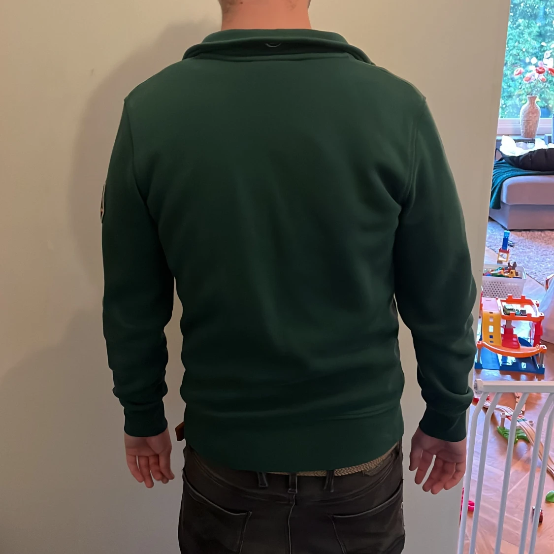 Mörkgrön ziptröja från Sail Racing med broderad logga och text på bröstet. Tröjan har hel dragkedja, två fickor med dragkedja och patch på ena ärmen. Tillverkad i 80% bomull och 20% polyester. Perfekt för dig som gillar sportig och stilren look. Modellen är 178 cm lång och väger 63 kg. Det är bara att höra av sig vid frågor och funderingar 😀