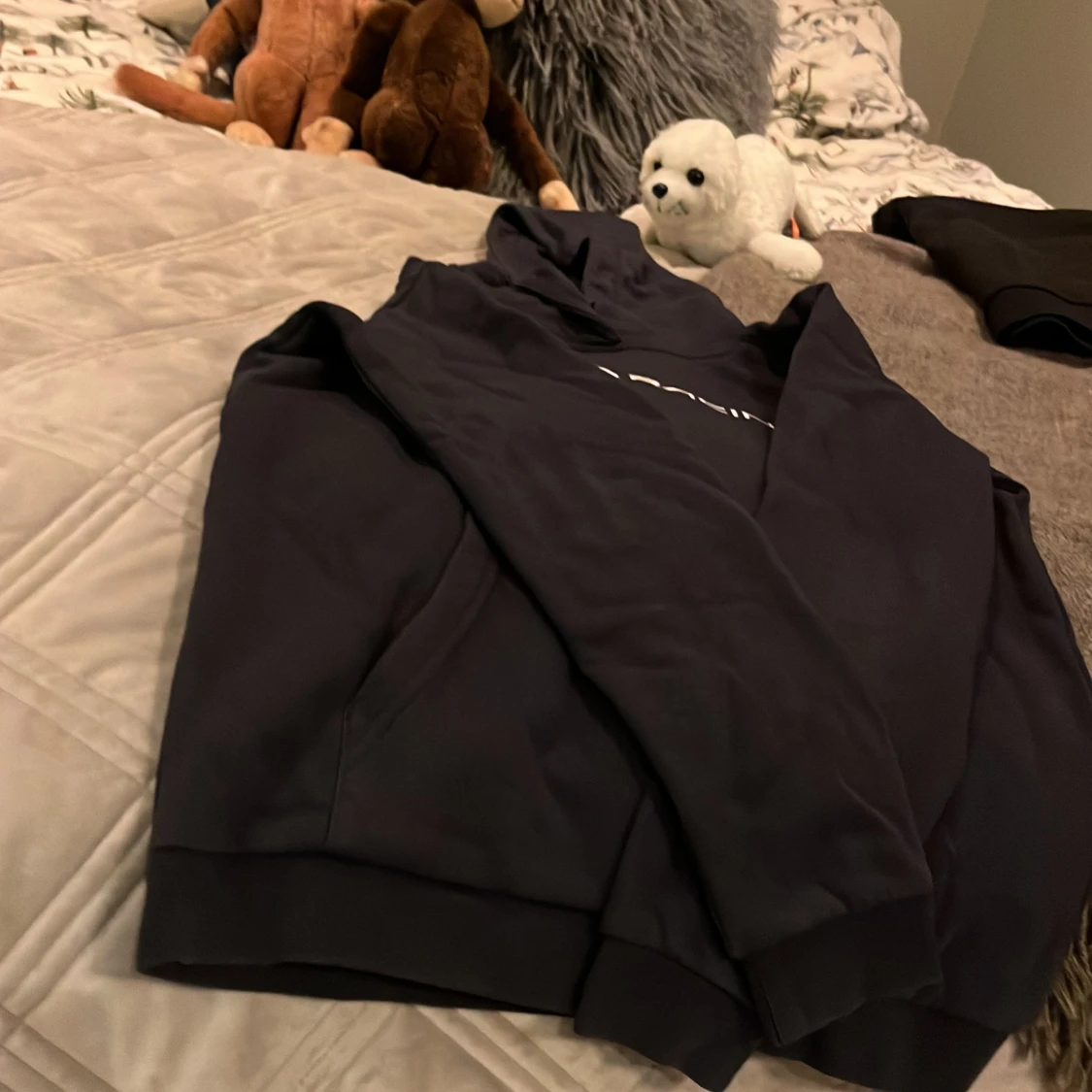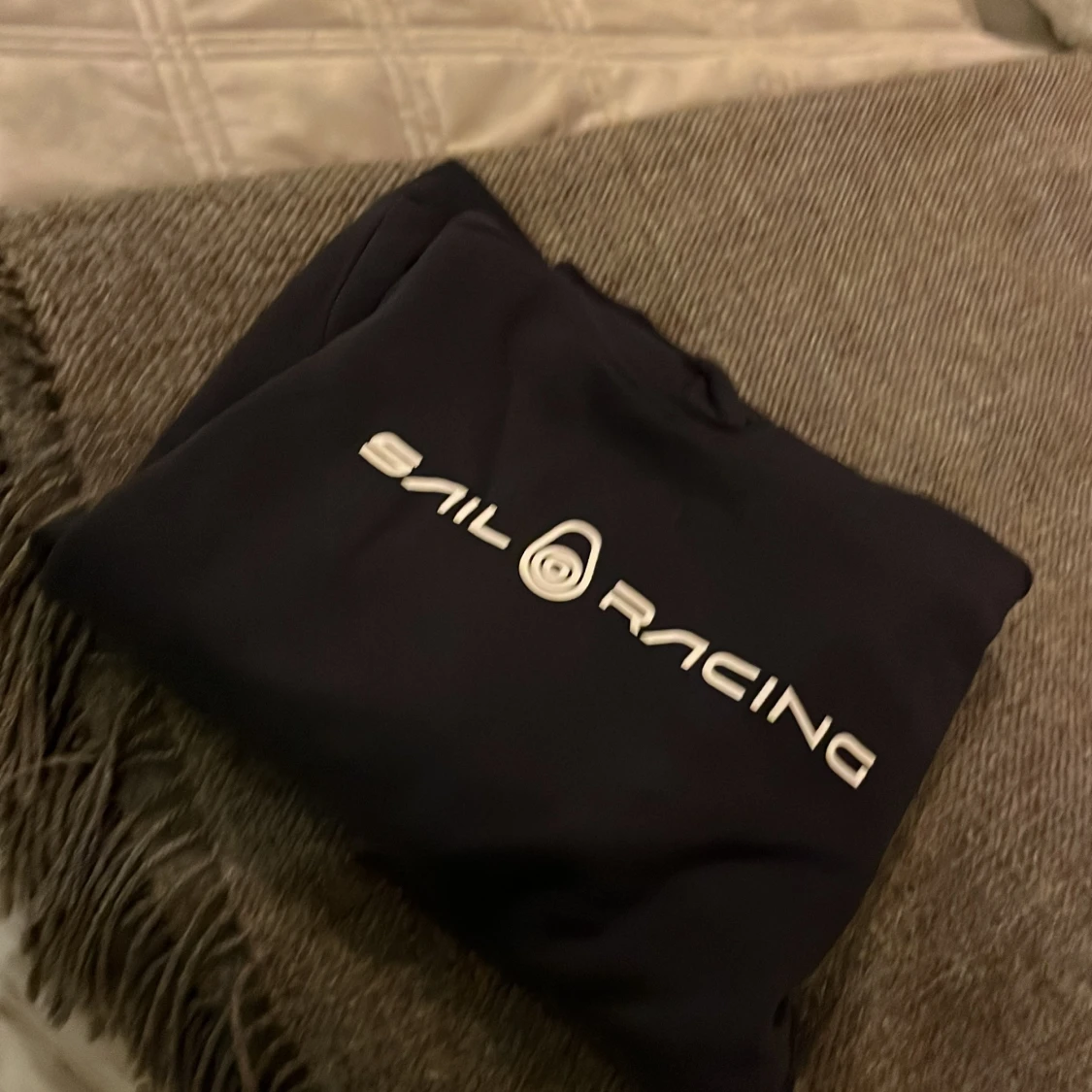 Säljer en svart hoodie från Sail Racing med vit logga på bröstet. Den har en klassisk känguruficka framtill och är perfekt för en avslappnad stil. Passar bra till både vardag och chill.