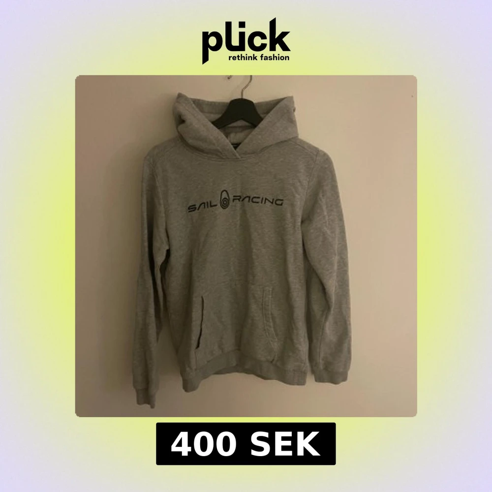 Säljer en grå hoodie från Sail Racing med tryck på bröstet och en liten logga på huvan. Tröjan har en klassisk design med känguruficka och ribbade muddar vid ärmslut och nederkant. Perfekt för en avslappnad stil.