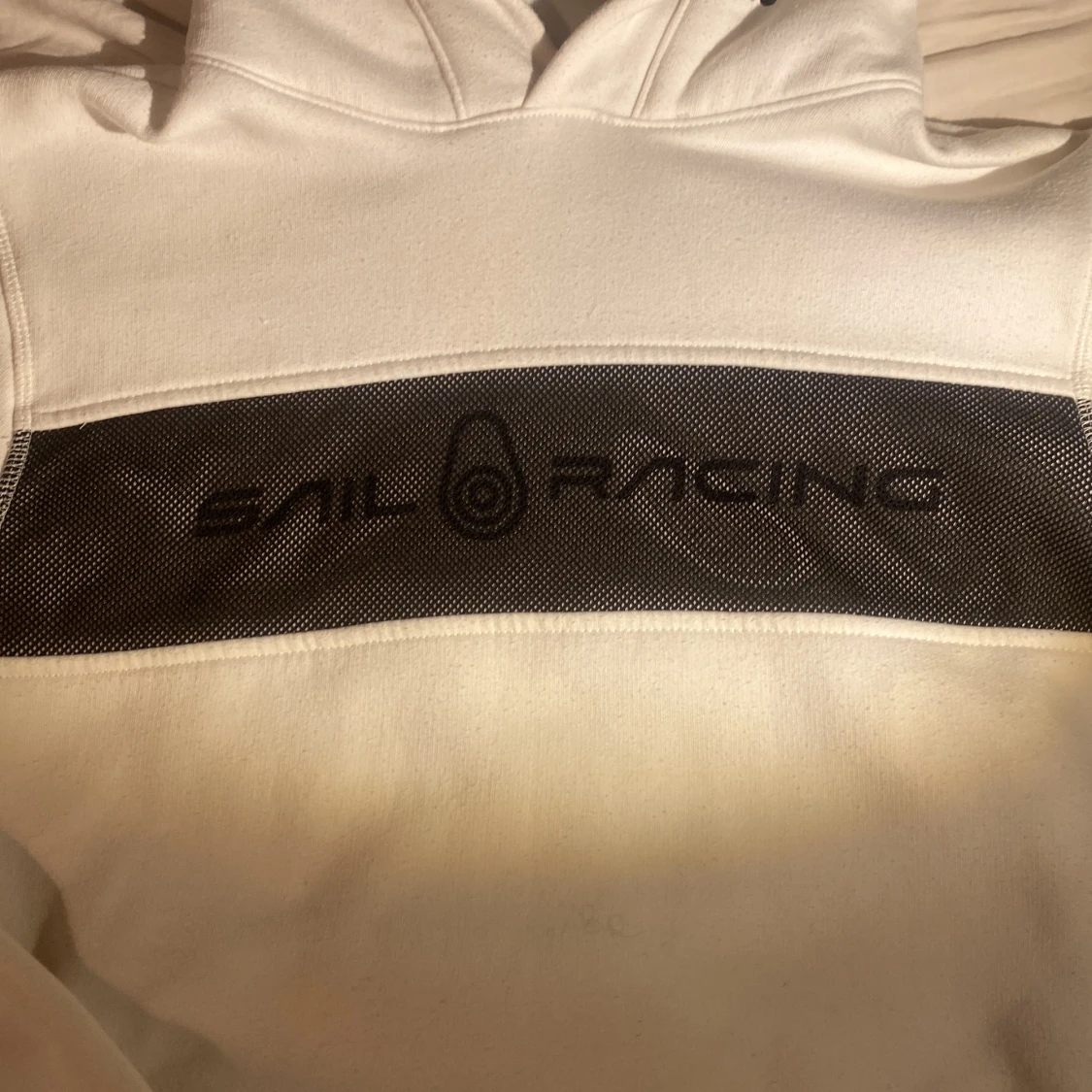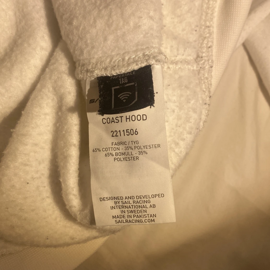 Vit hoodie från Sail Racing med svart logga och text på bröstet. Tröjan har huva med svart kant och är tillverkad i en mjuk bomulls- och polyestermix. Perfekt för dig som gillar sportig och clean stil. Pris kan diskuteras vid snabb affär!