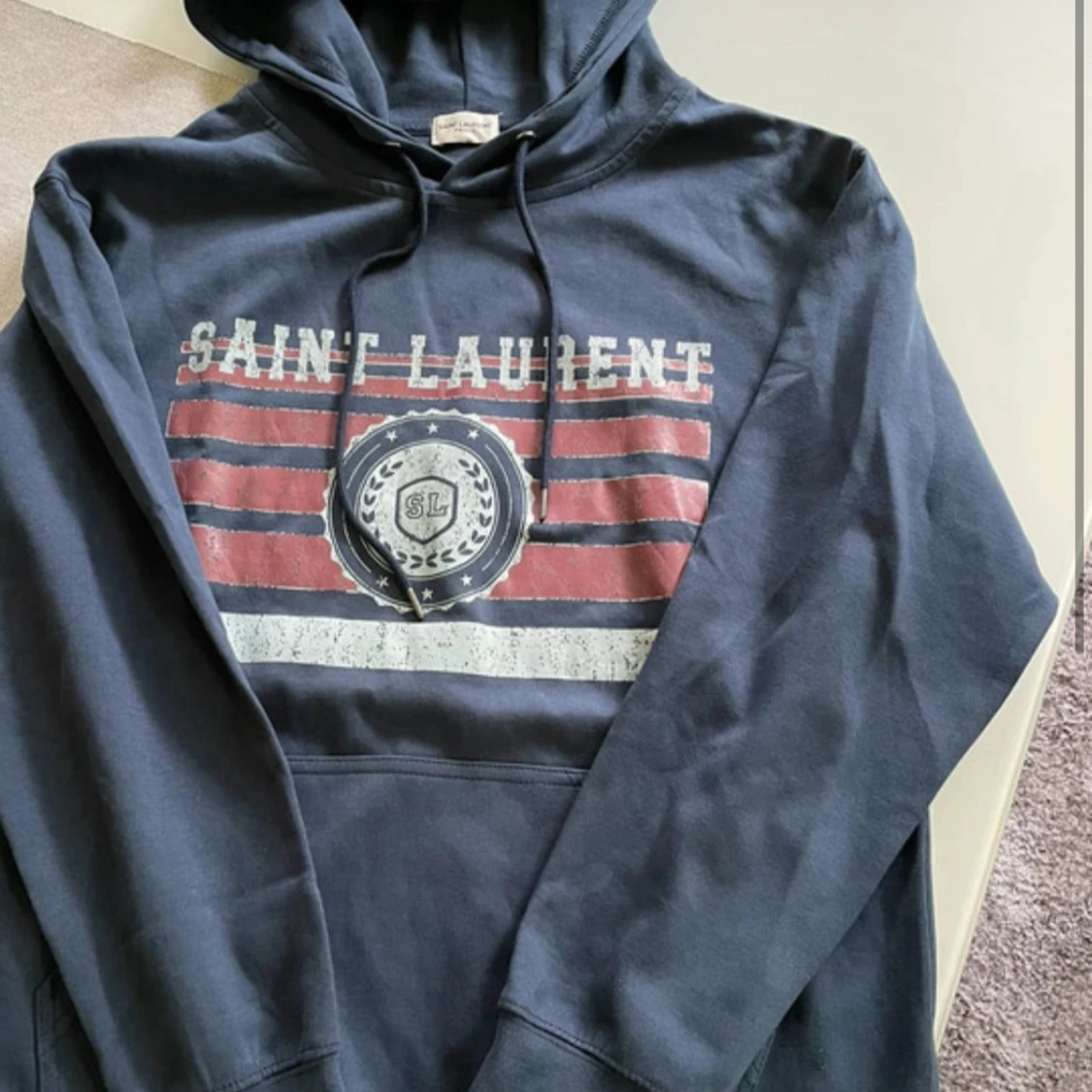 En riktigt fet ysl hoodie som e helt ny i helt nytt skick använd 1 gång, skulle söga att den sitter mer som en m-l så alltså lite mindre i storleken. Priset är inte hugget i sten och tveka inte kring frågor🙌🙌