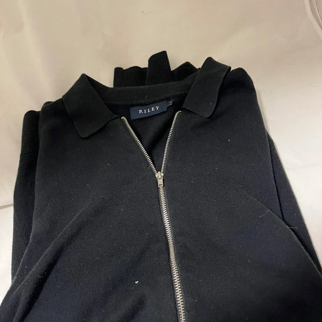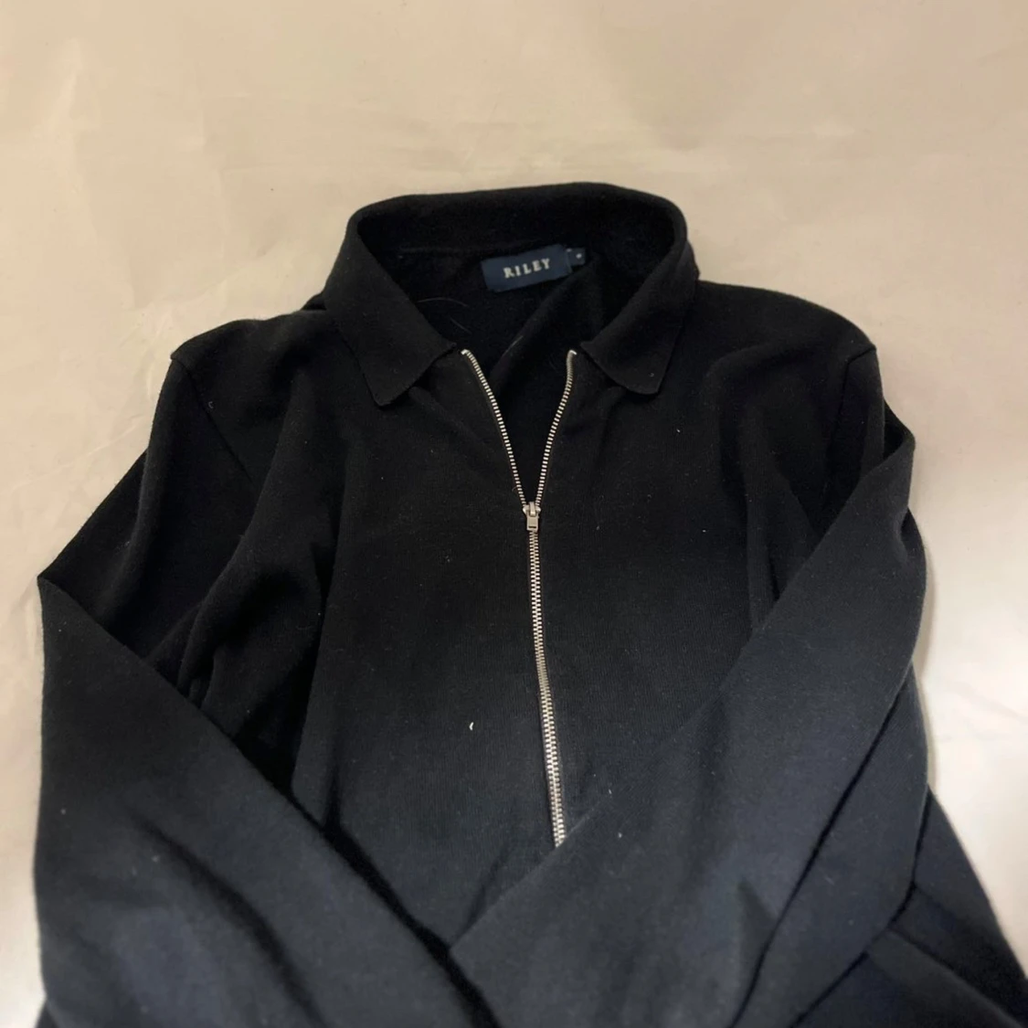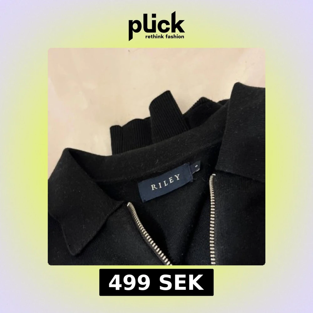 Svart långärmad tröja från Riley med krage och hel dragkedja framtill. Tröjan har en clean look och är tillverkad i ett mjukt material som känns skönt mot huden. Perfekt för dig som gillar stilrena och enkla plagg.