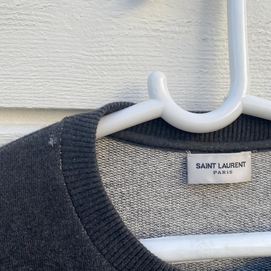 Säljer nu min Saint Laurent tröja. Snygg tröja som matchar perfekt till ett par ljusblåa jeans. Väldigt fint skick, ända flaw är ett litet hål vid kragen som är igensytt. Dock ingenting man märker av.