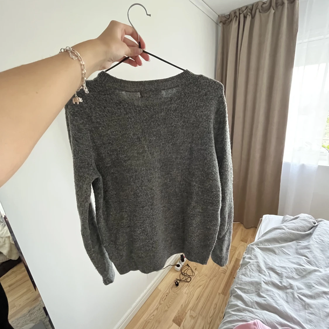 En fin stickad tröja från hm som påminner mycket om de stickade tröjorna från veromoda. Finns täcken på användning men fortfarande i fint skick, hör av er vid frågor!💕