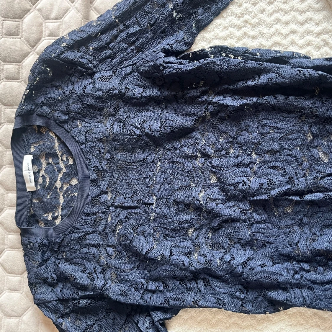 Säljer en mörkblå långärmad spetsblus från Samsøe Samsøe.