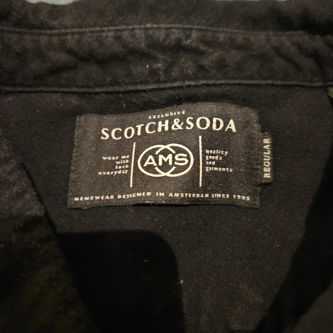 Svart skjorta från Scotch & Soda i storlek XXL men sitter som L. Klassisk modell med bröstficka, knappar framtill och krage. Skjortan är tillverkad i mjuk bomull och har en stilren look som passar perfekt till jeans eller chinos.