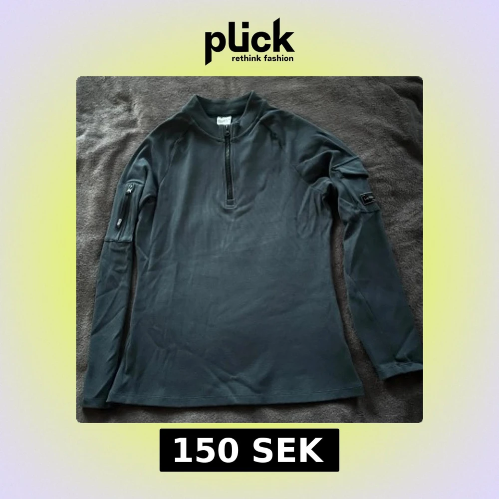 Säljer en sea green långärmad tröja från ICANIWILL med dragkedja framtill och en praktisk ficka med dragkedja på ärmen. Perfekt för träning eller vardagsbruk. Splitterny. Tröjan har en stilren design med ribbade detaljer. Storlek S