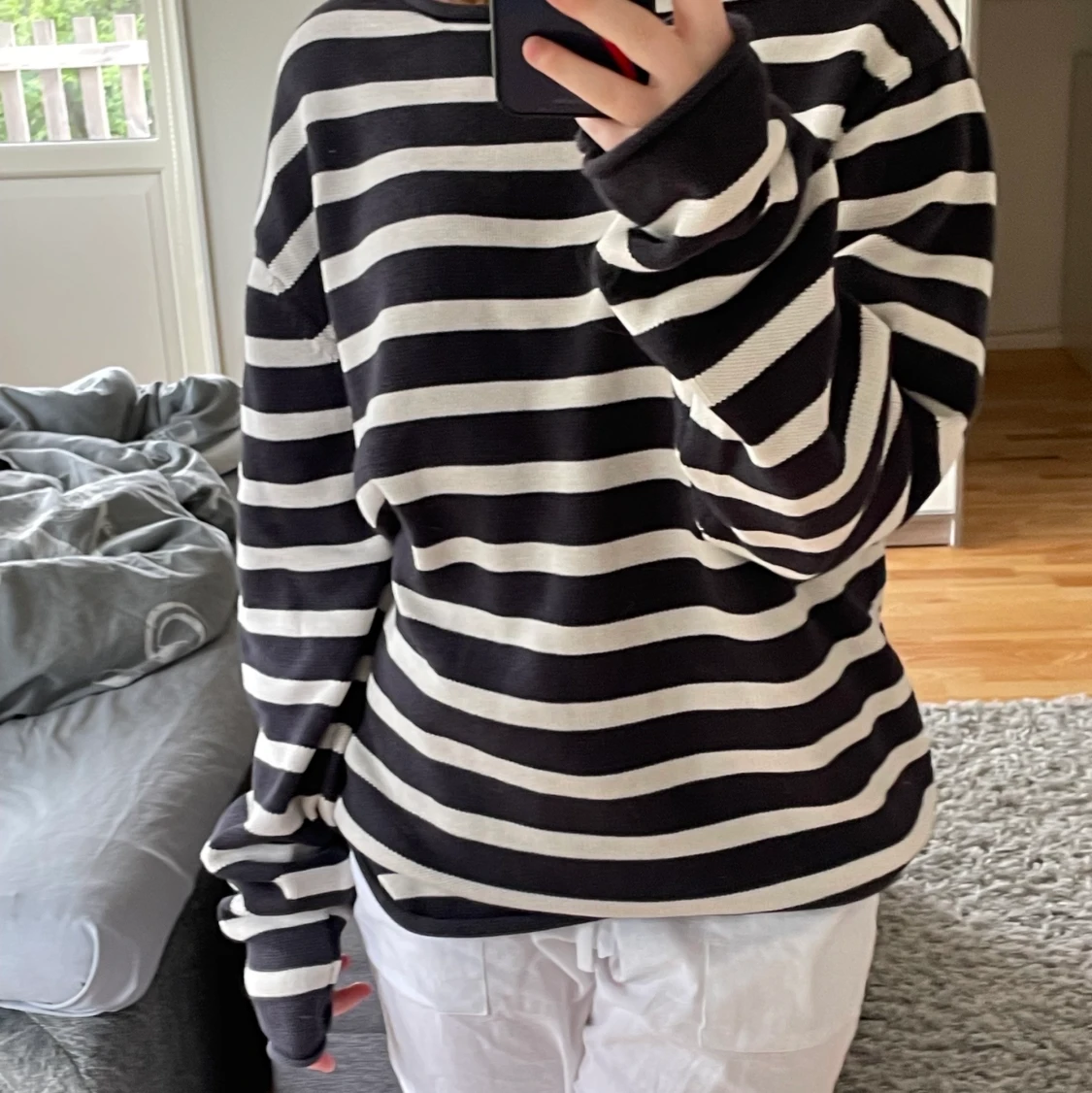 Så snygg stickad randig tröja från seaside , i storlek s men oversized. Passar xs-m beroende på hur man vill att den ska sitta!😍 Tvättas innan jag skickar. Kontakta mig gärna vid frågor eller intresse!🥰