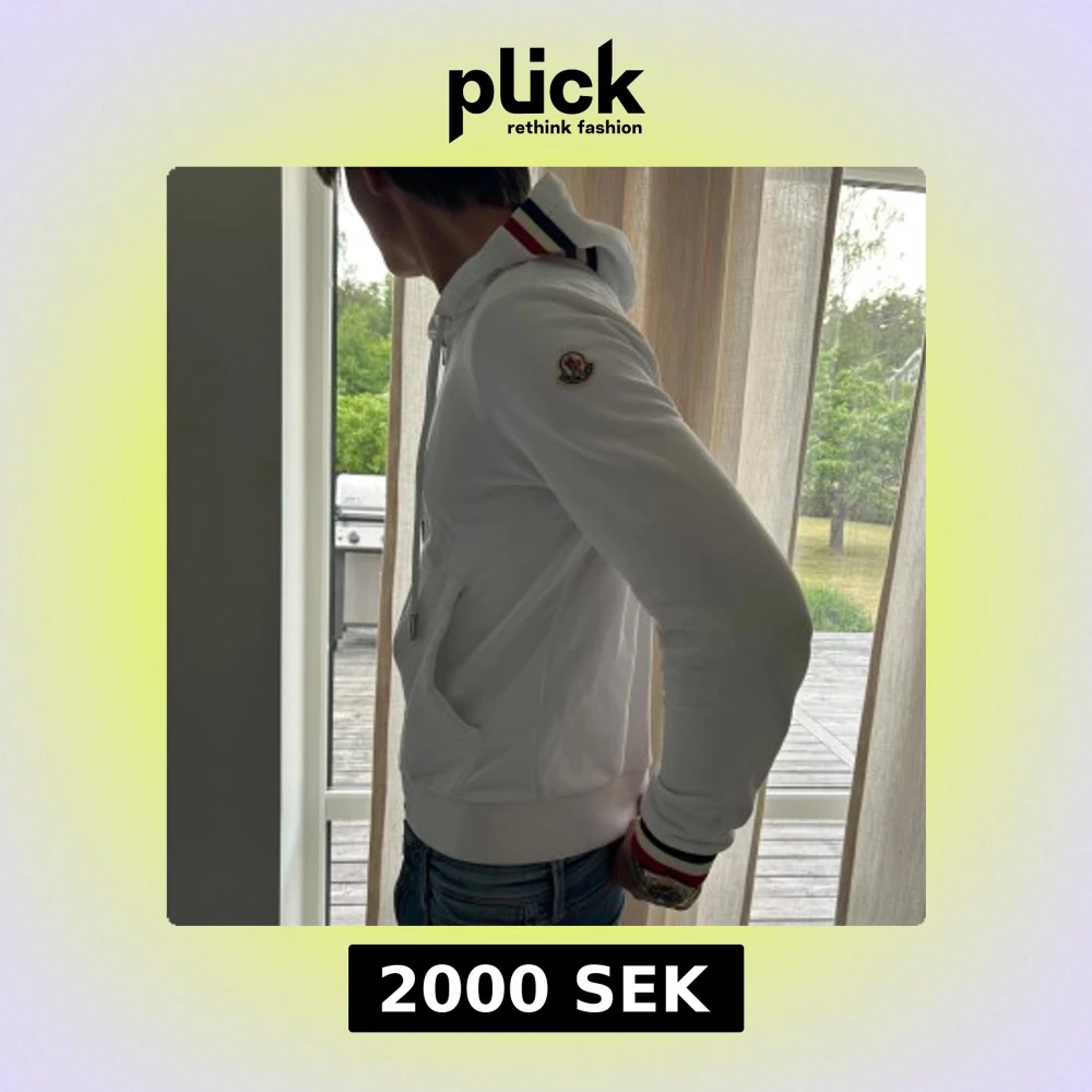 Snygg vit hoodie från Moncler med dragkedja, huva och snörning. Tricolore-detaljer på huva och ärmslut, samt Moncler-logga på ärmen. Tillverkad i mjuk bomull, perfekt för en clean och sportig look.