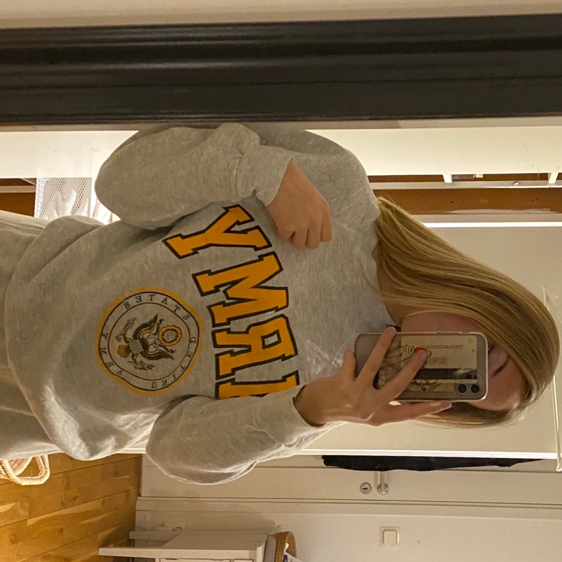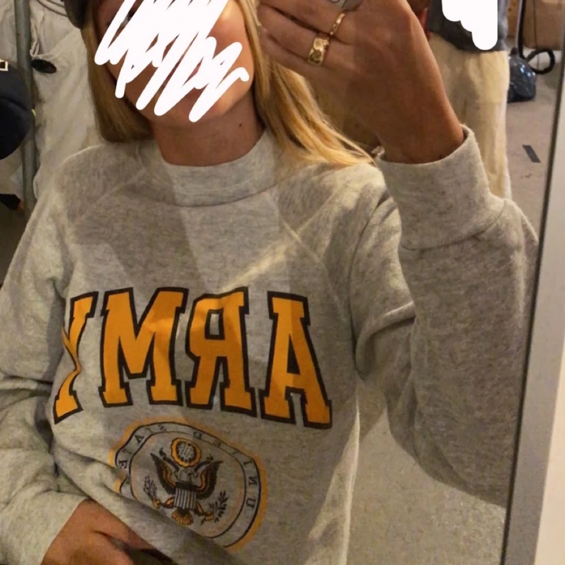 Denna sweatshirt är köpt från secondhand, det står ej storlek men skulle gissa på s/xs