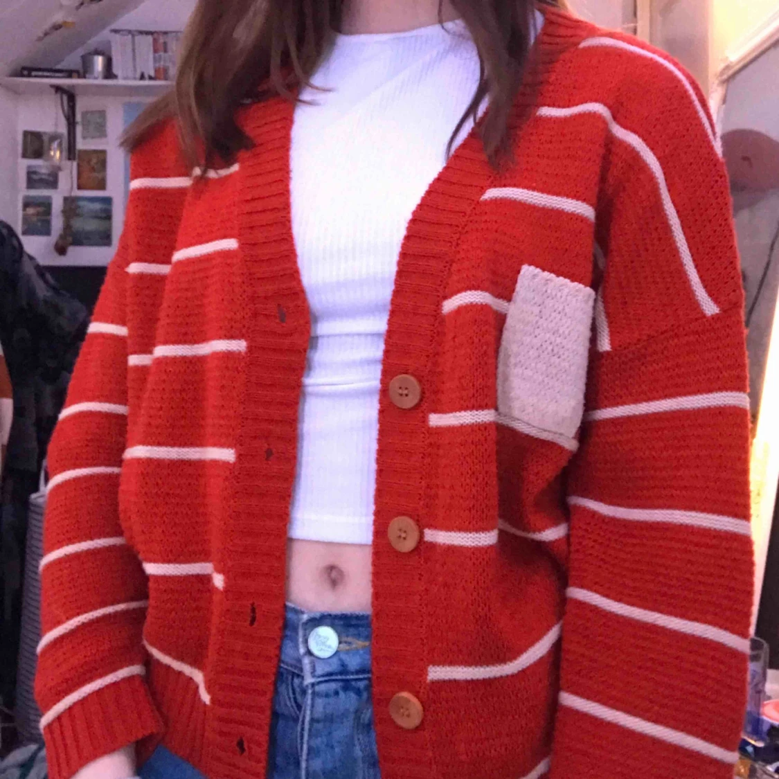 Stickad kofta som jag köpte på second hand för några månader sen men aldrig använt, passar mig som är en S 🍓🍄