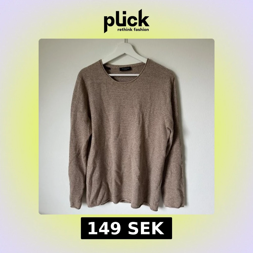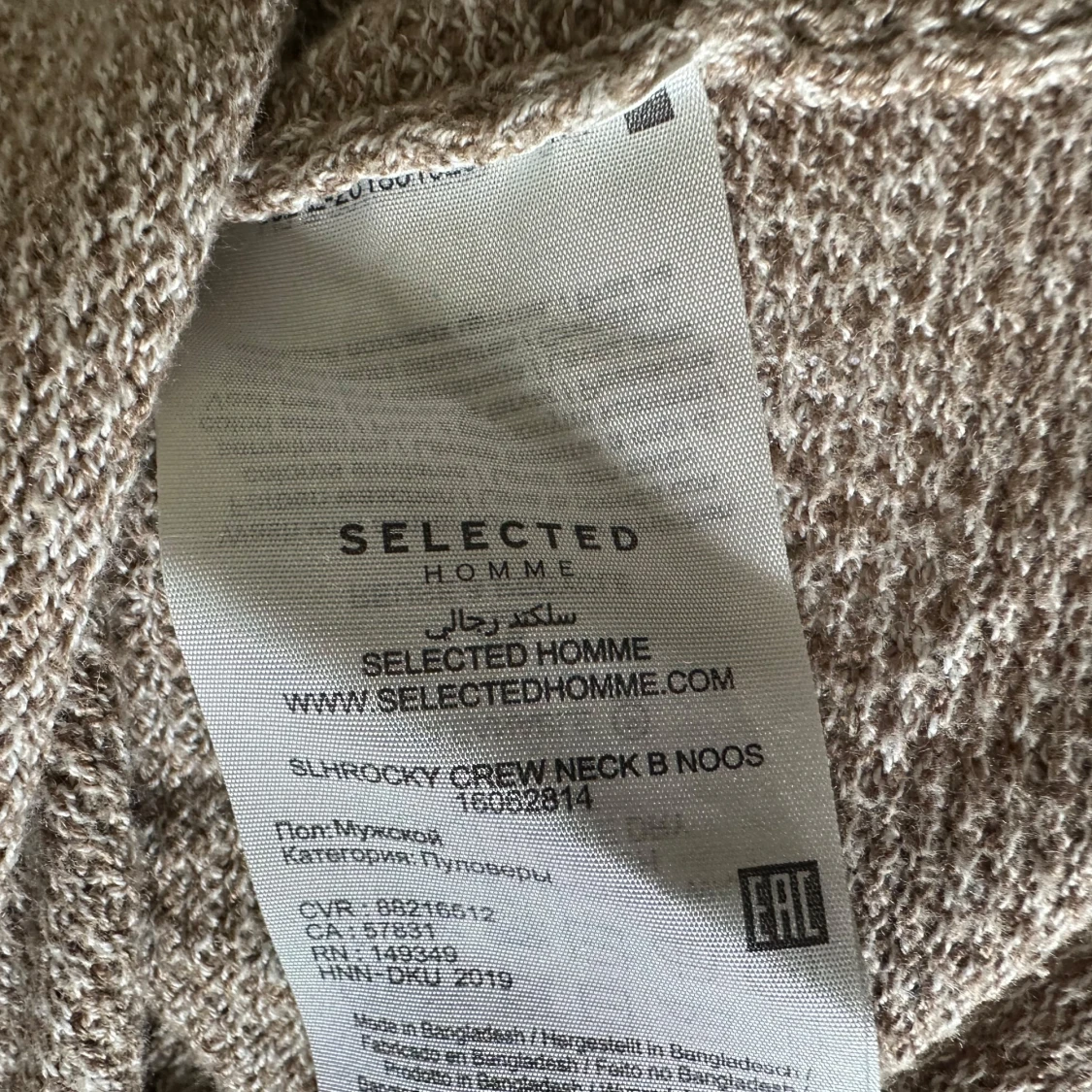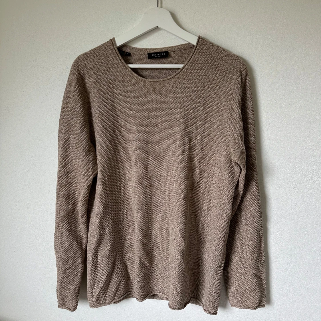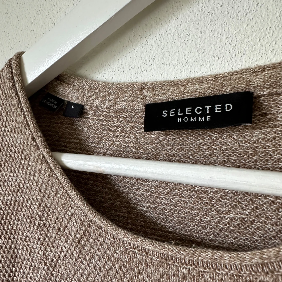 Säljer en beige stickad tröja från Selected Homme i storlek L. Tröjan har rund halsringning och är långärmad, perfekt för lager-på-lager under kyligare dagar. Materialet är mjukt och ger en avslappnad men stilren look. 2N7