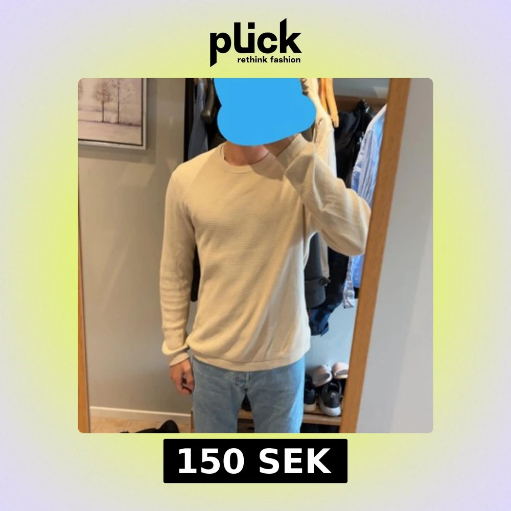 Snygg beige stickad tröja från Selected Homme i storlek M/L perfekt för hela året. Tröjan har en rund halsringning och ett diskret ribbat mönster som ger en schysst struktur. Långärmad och med normal passform och även bra skick.