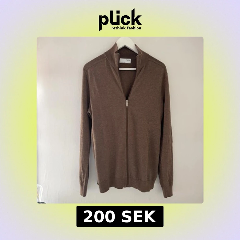 Snygg brun kofta från Selected med hel dragkedja framtill och hög krage. Tröjan är långärmad och har ribbade muddar vid ärmslut och nederkant. Perfekt för lager-på-lager och chill stil.