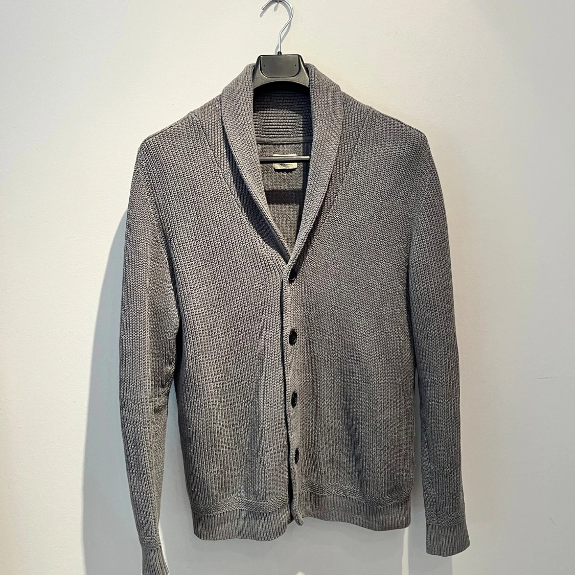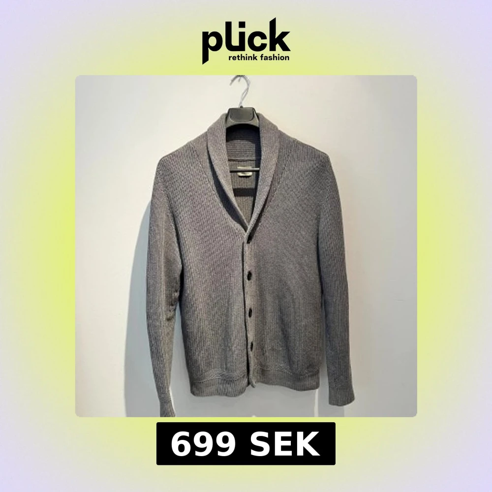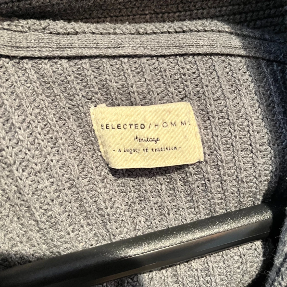 Snygg grå kofta från Selected Homme med ribbad struktur och bred krage. Koftan har knappar framtill och är långärmad, perfekt för lager på lager. Materialet är stickad bomull som känns mjukt och skönt mot huden. Hör av er vid frågor