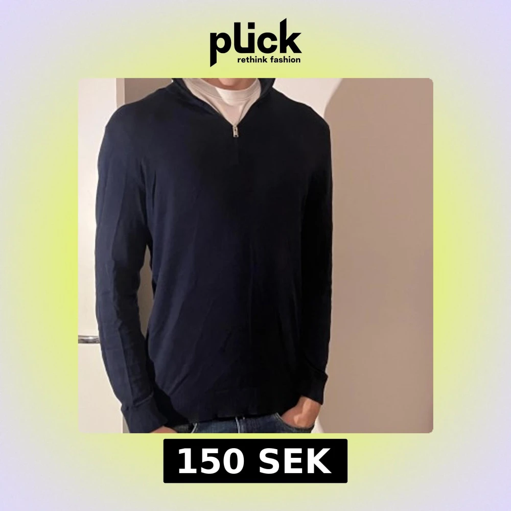 Snygg mörkblå långärmad tröja med half zip framtill. Tröjan har en klassisk och stilren look med ribbade muddar vid ärmslut och nederkant. Perfekt för dig som gillar enkel och clean stil. Passar dig som vill ha en normal passform.