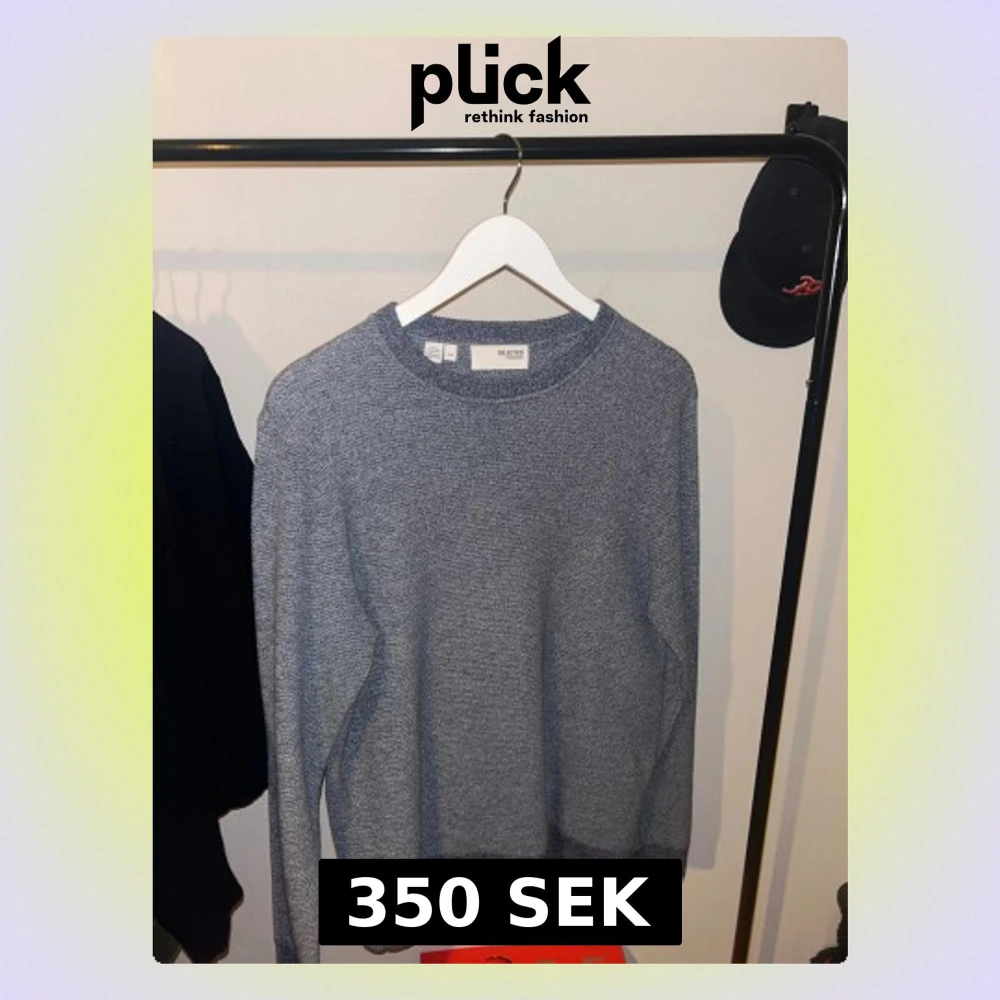 Säljer en blåmelerad stickad tröja från Selected Homme. Tröjan har rund halsringning. Oanvänd!
