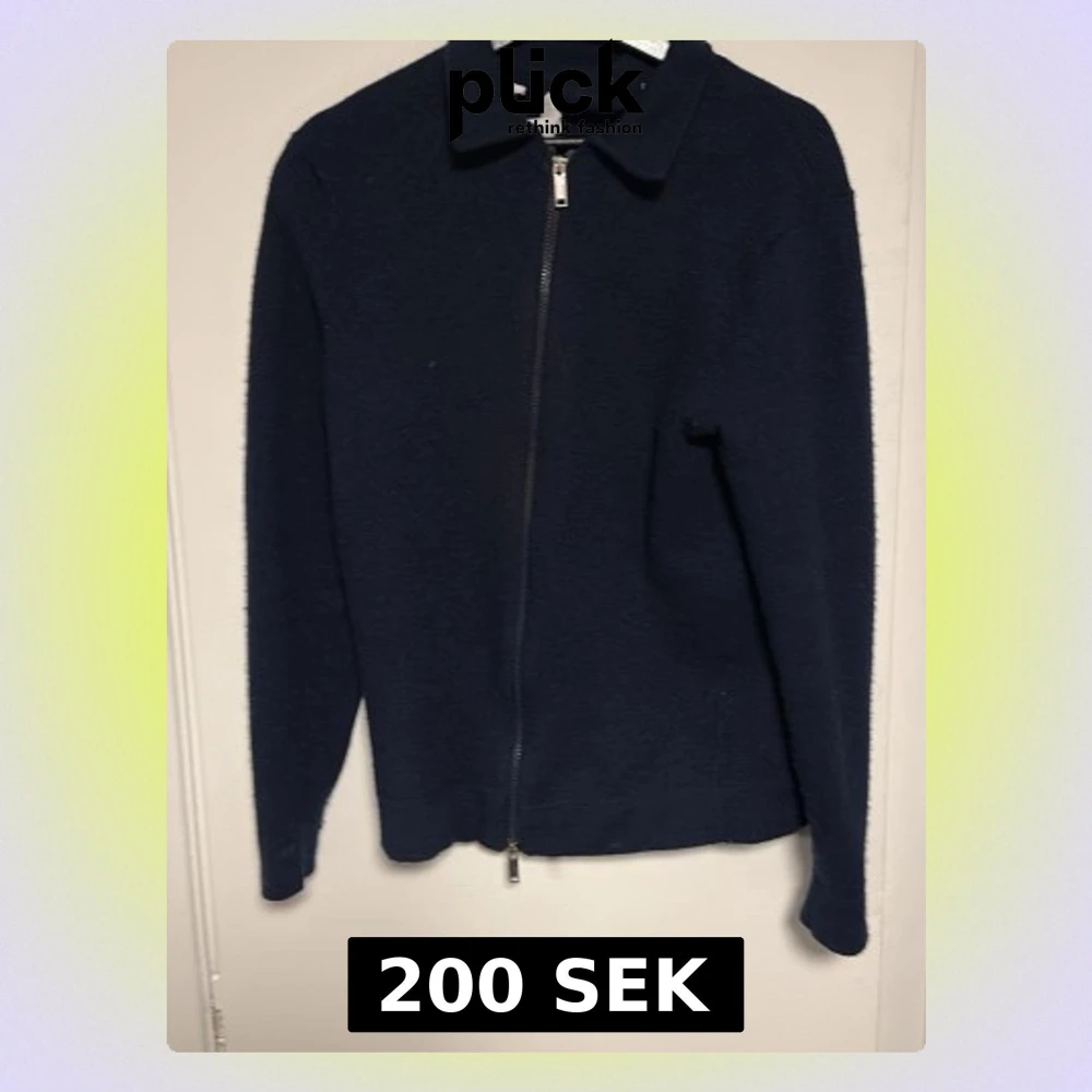 Säljer en mörkblå zip up i stickat material som passar perfekt till vintern