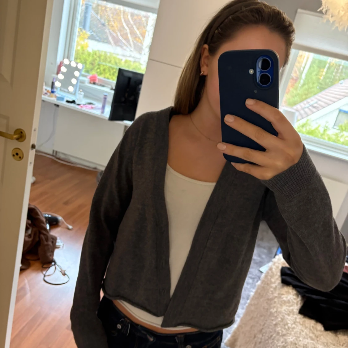 Använd ett fåtal gånger men bra kvalitet! Saknar knappar att knäppa den och står ingen storlek men skulle uppskatta XS🌸