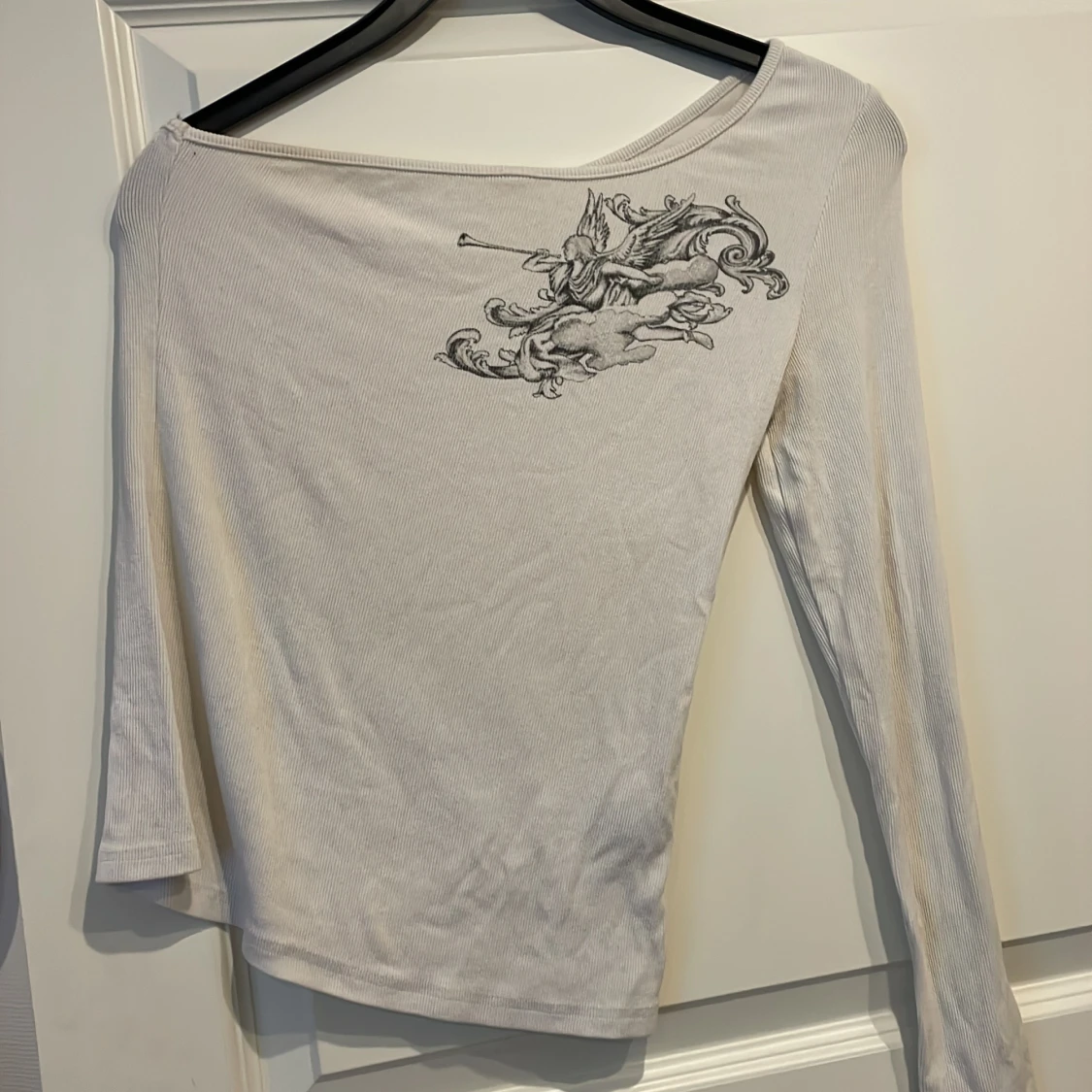 Fin enärmad tröja som har tryck på en ängel. Använd få gånger. Väldigt skönt material. För fler frågor är det bara att skriva till mig!😊