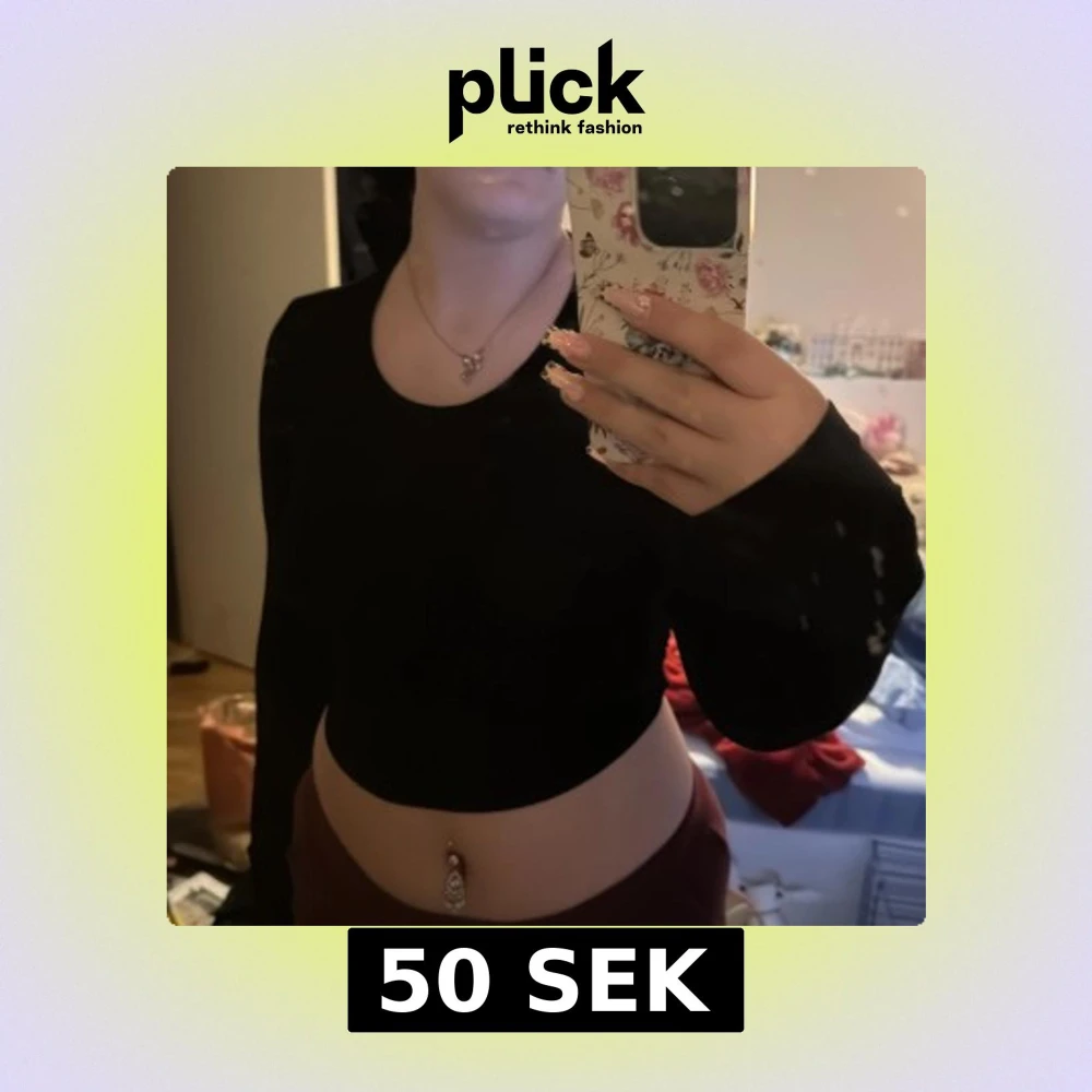 Säljer en svart croppad långärmad topp från SHEIN. Toppen har en tight passform och är tillverkad i ett mjukt, stretchigt material. Perfekt att styla med höga byxor eller kjol för en trendig look.