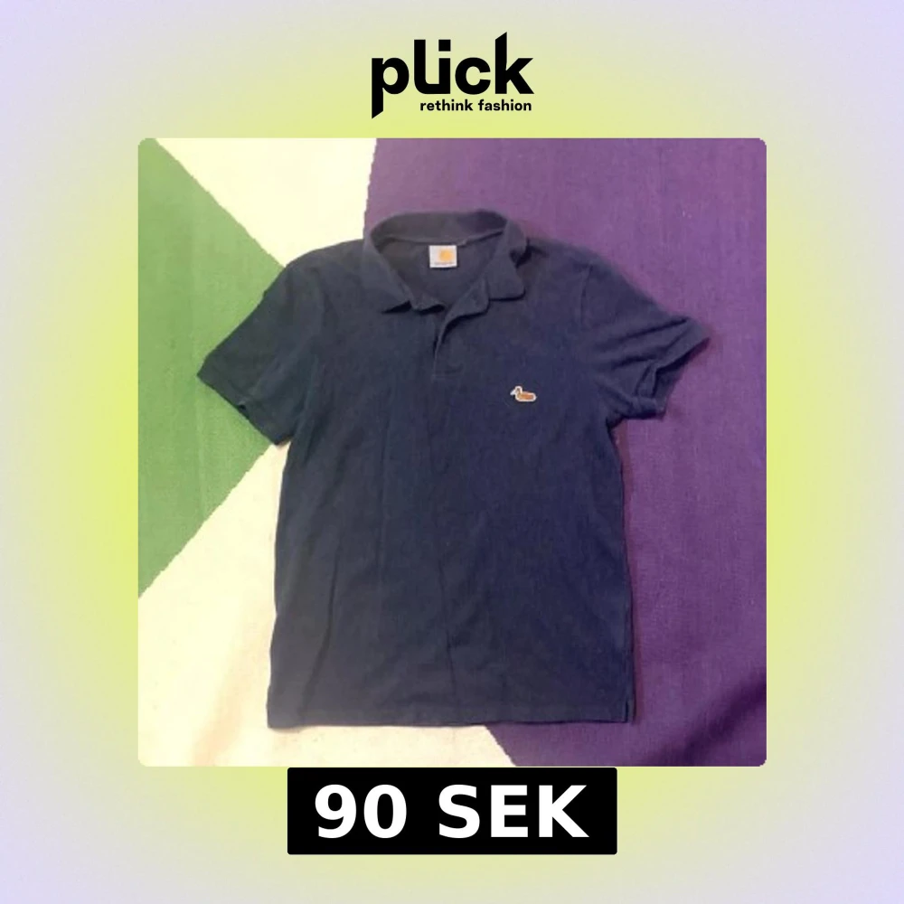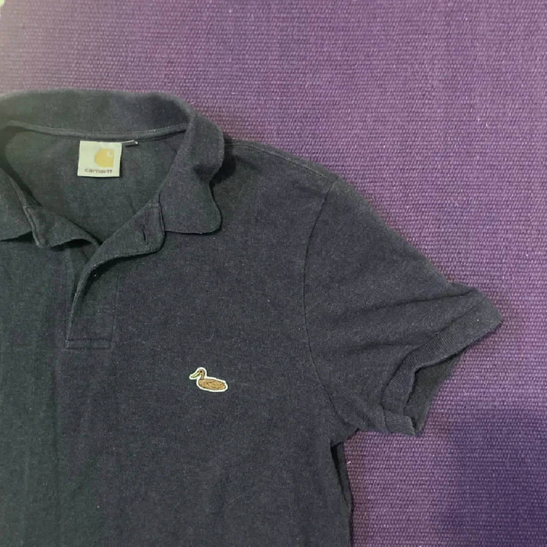 Snygg mörkblå pikétröja från Carhartt med klassisk krage och korta ärmar. Tröjan har en liten broderad anka på bröstet som detalj. Perfekt för dig som gillar enkel och stilren streetwear.