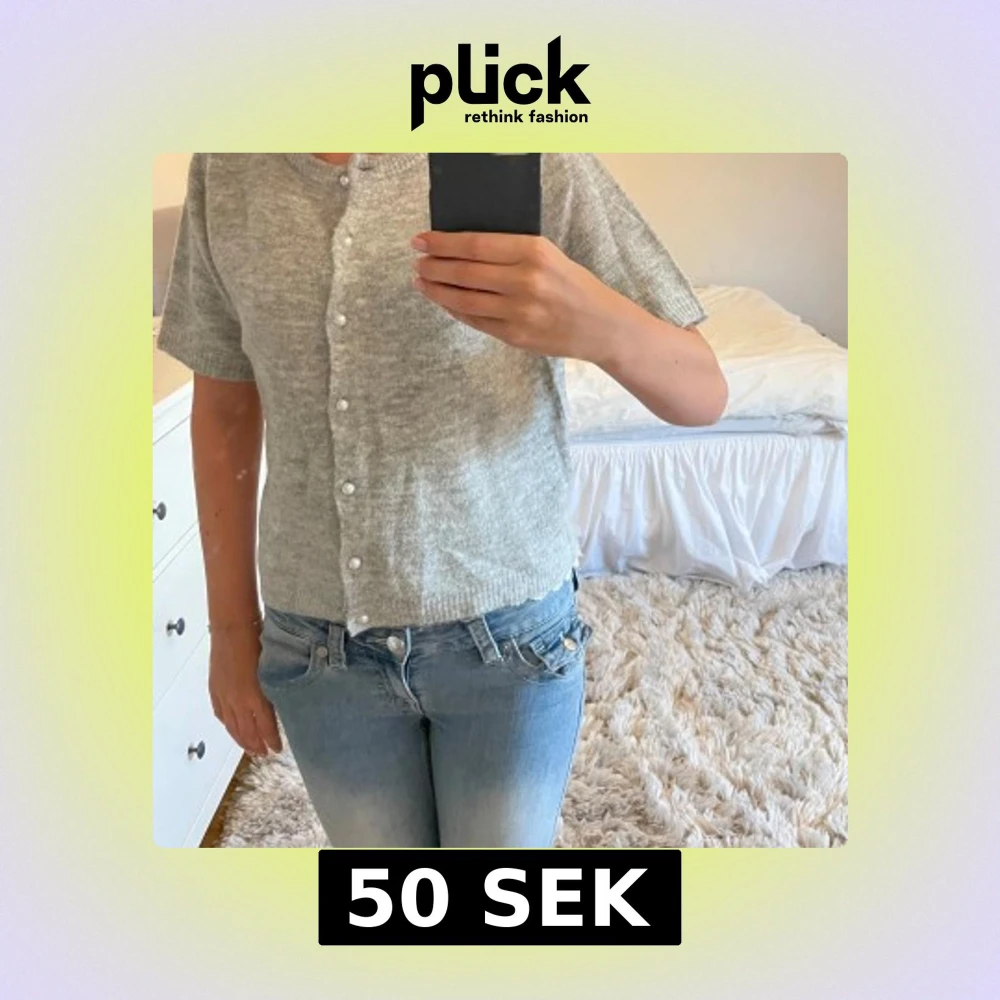 Superfin ljusgrå kofta med korta ärmar och pärlknappar framtill. Använd fåtal gånger 💗