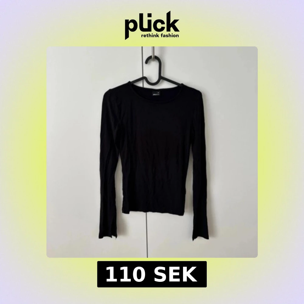 Svart långärmad topp från Gina Tricot i mjuk bomull. Modellen är slim och har rund halsringning. Ärmarna har en cool slitsdetalj längst ner som ger en extra edge till looken. Perfekt att styla med jeans eller kjol för en clean vibe. Som ny 😍