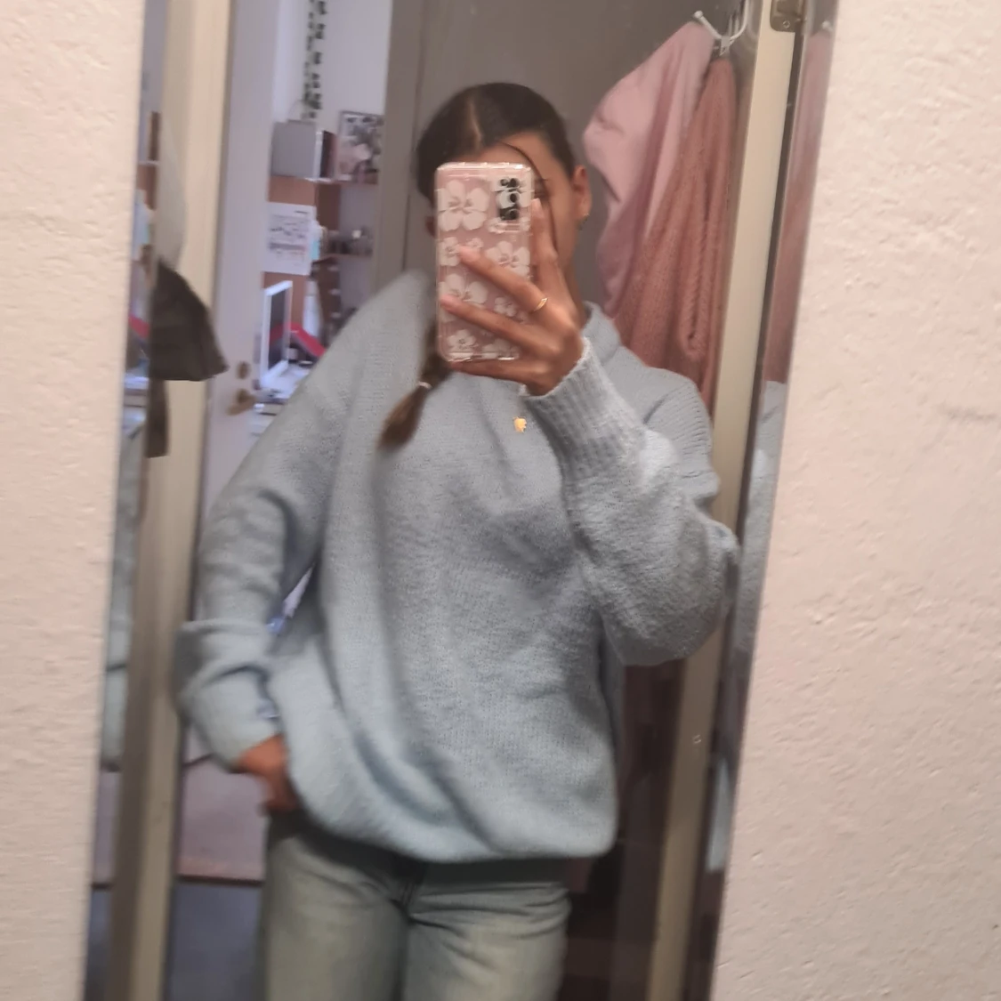 Ljusblå stickad tröja