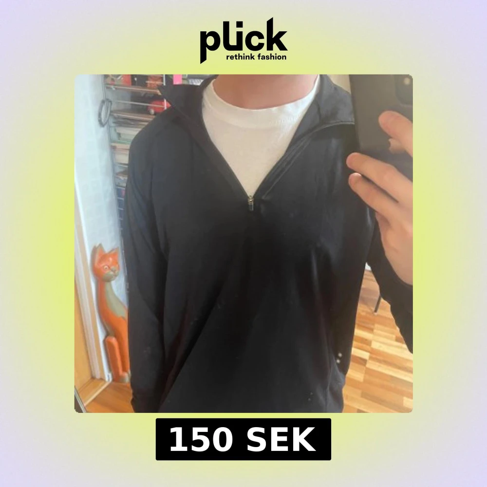 Svart långärmad tröja från Newbody med half zip och hög krage, till för träning. Tröjan har hål för tummarna vid armarna, och är i tunn polyester, perfekt för träning. Aldrig använd.