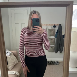 En röd-och vitrandig tröja från HM med urringning i ryggen. Supersnygg och väldigt bekväm. I nyskick!
