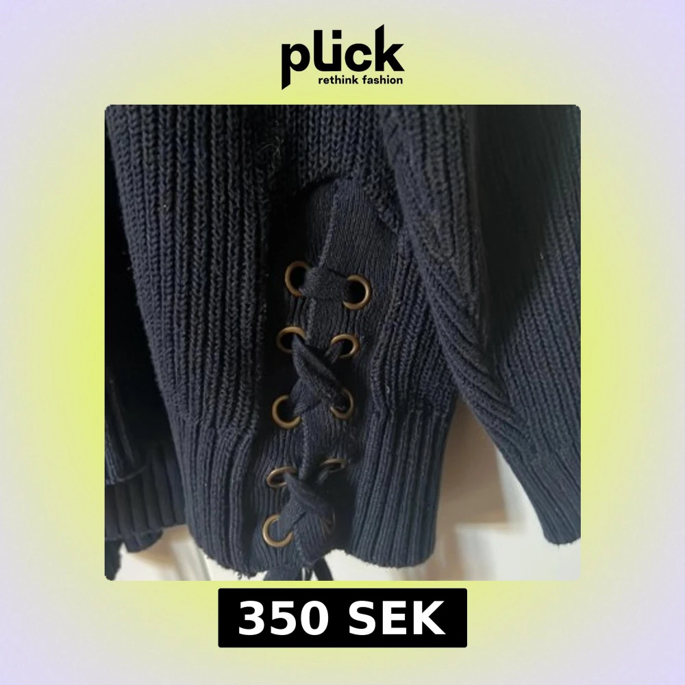 Säljer en jättesnygg mörkblå stickad tröja med knyt på sidan.💙