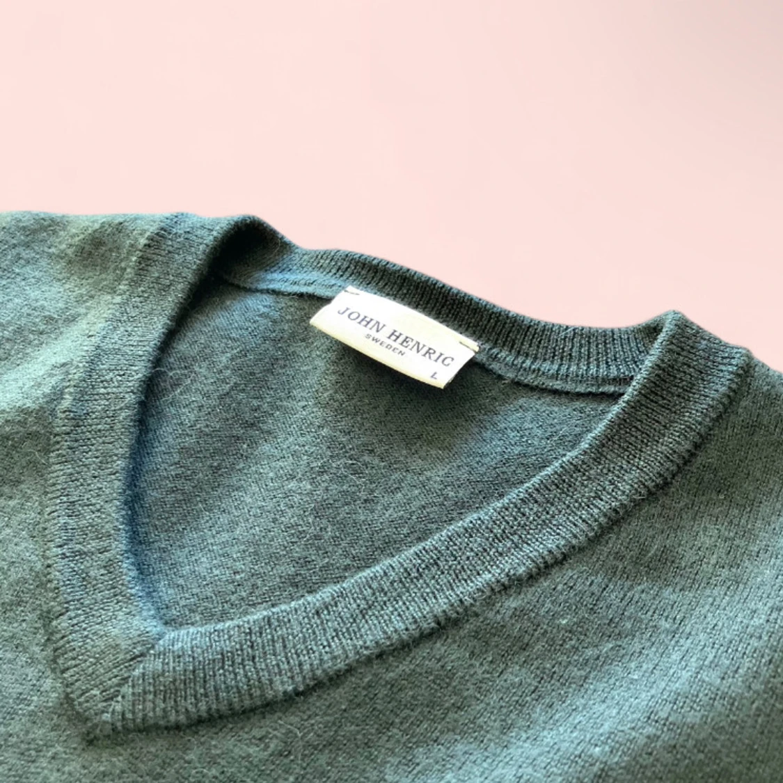 Slim fit Mörkgrön John Henric Merinoull V-Neck Tröja! Storlek L, men sitter mer som M! Priset går att diskutera!