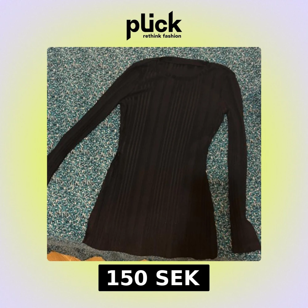 Svart långärmad topp från Shein i storlek S. Modellen är ribbad med vertikala ränder och har en slits på sidan. Tunn och stretchig, perfekt att styla med jeans eller kjol. Enkel och clean look med rund halsringning.