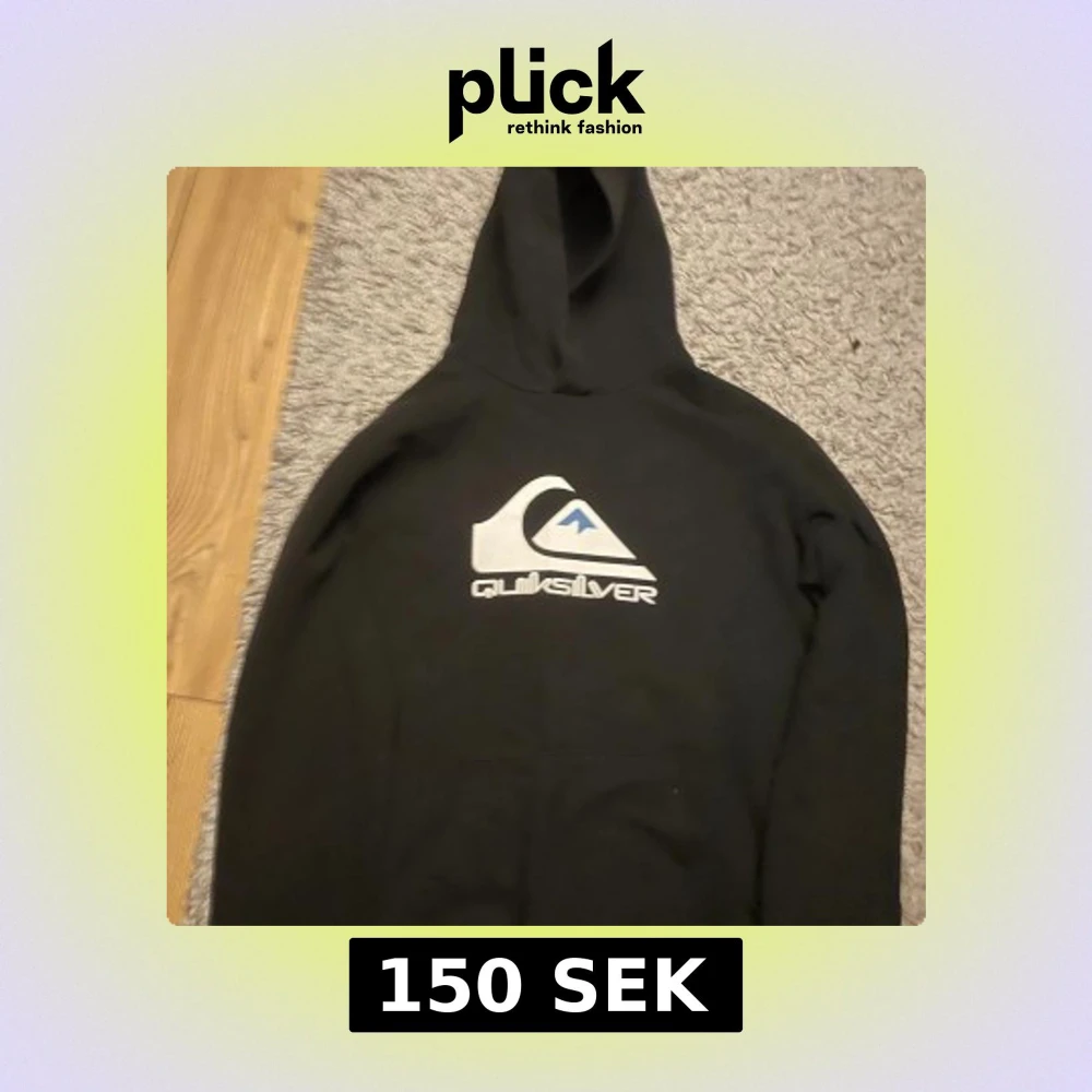Svart hoodie från Quiksilver med stor vit och blå logga på bröstet. Klassisk huva och magficka framtill. Perfekt för dig som gillar streetwear och vill ha en enkel men snygg tröja med tydlig branding.