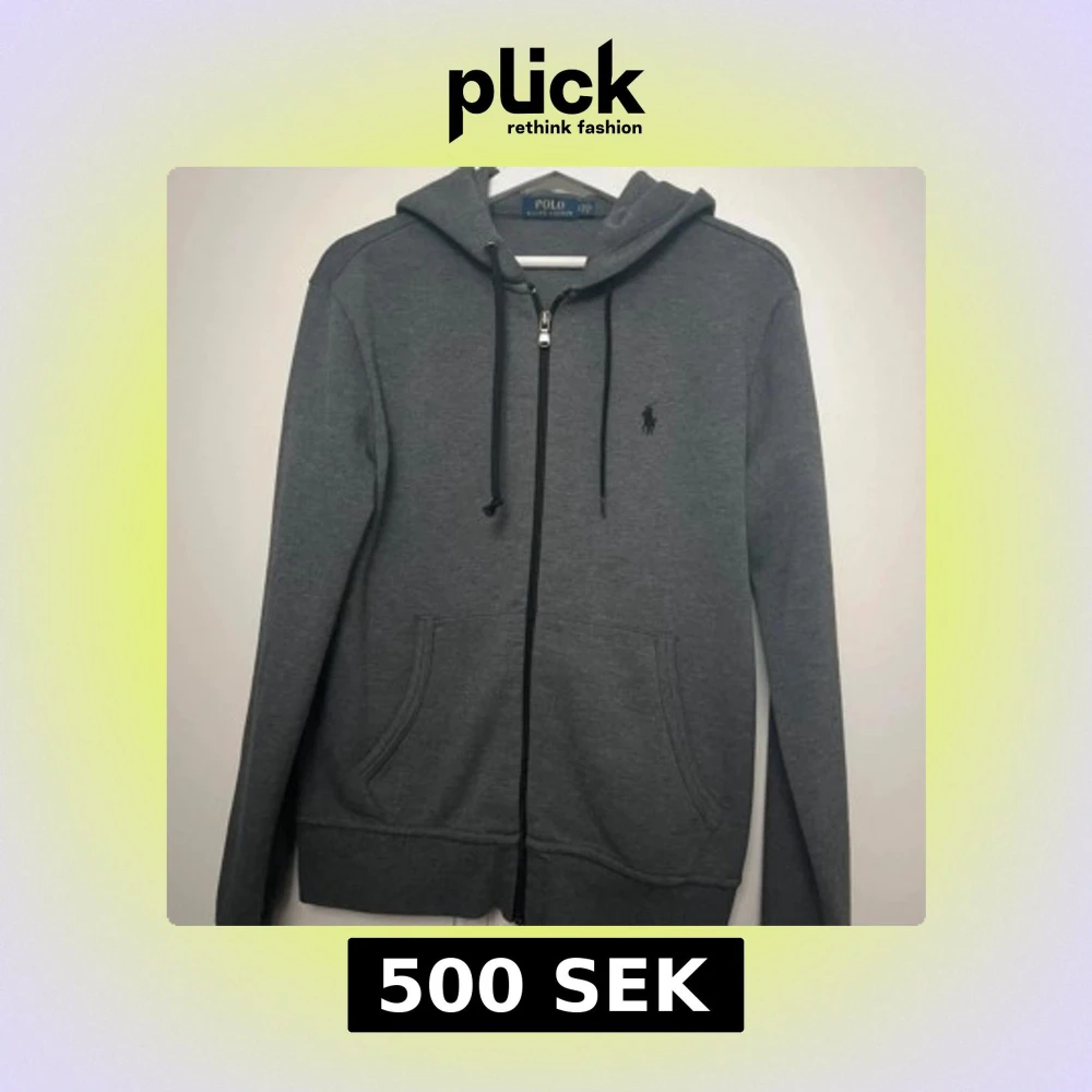 Snygg grå hoodie från Polo Ralph Lauren med dragkedja, huva och svarta snören. Klassisk logga broderad på bröstet och två stora fickor framtill. Perfekt för chill dagar eller när du vill ha en clean streetstyle.