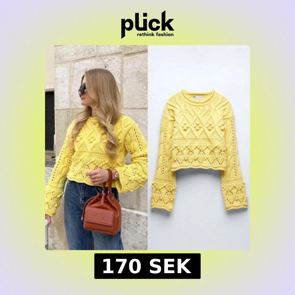 Superfin gul stickad tröja från Zara med croppad passform. 💛🌼
