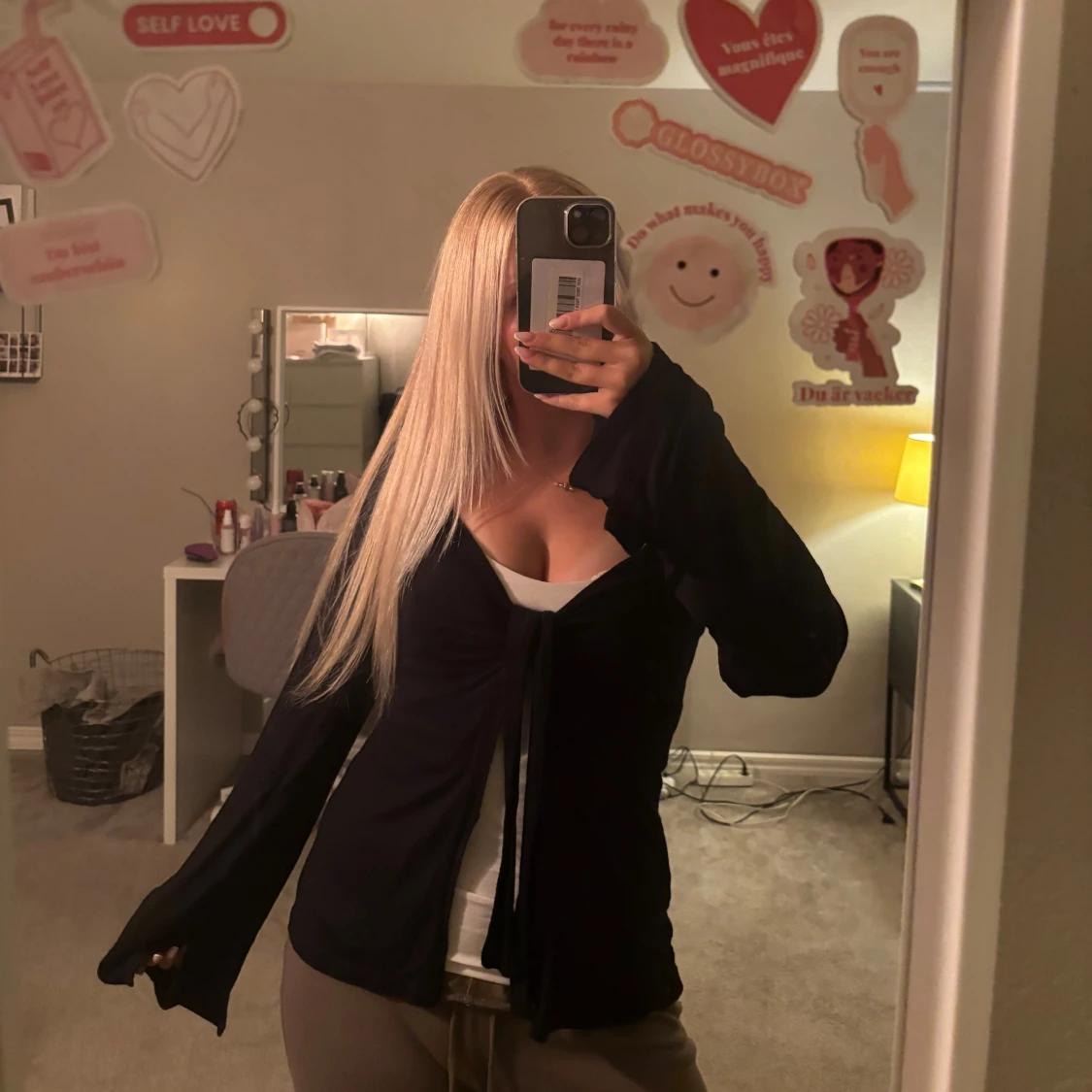 Svart omlottkofta från Design by Si i tunnare material. Skriv för fler bilder eller frågor💗☺️